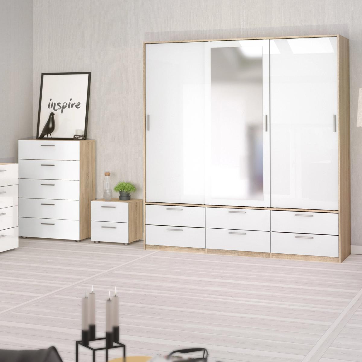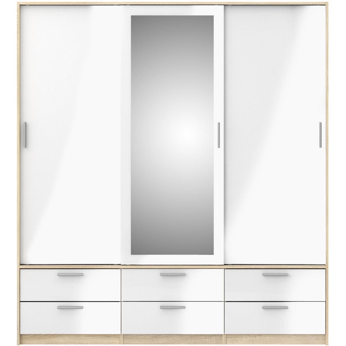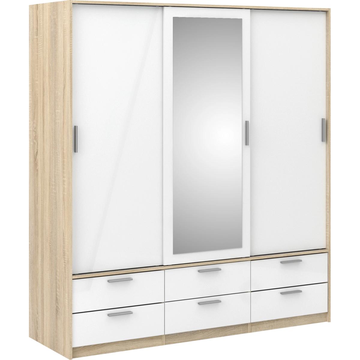 Mia Three Door Six Drawer Wardrobe - Oak, White Gloss