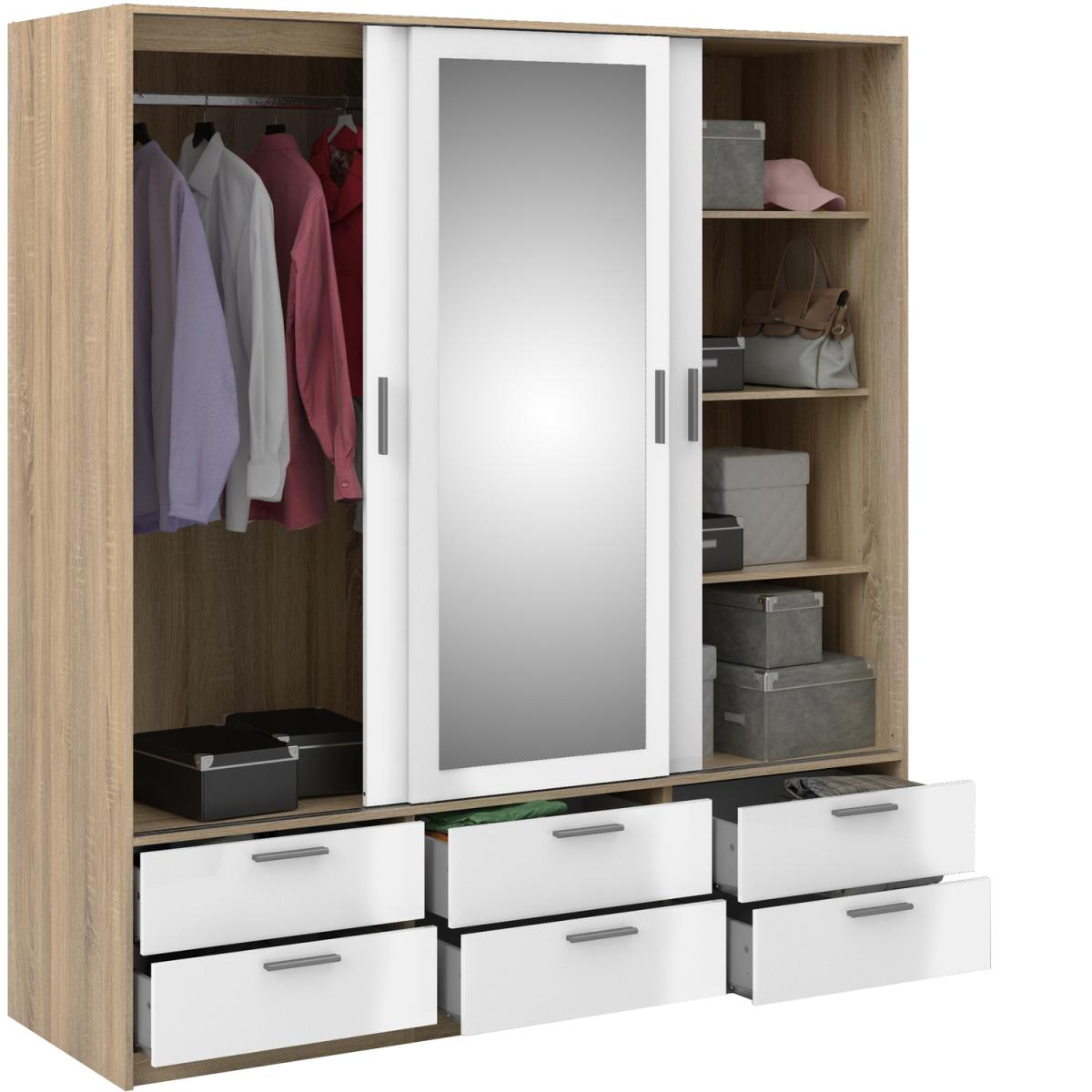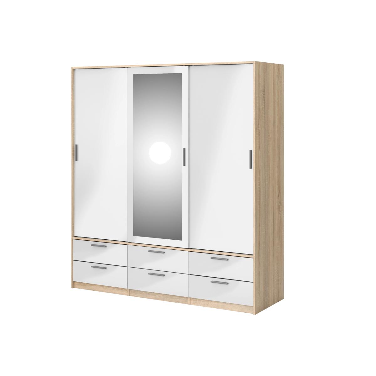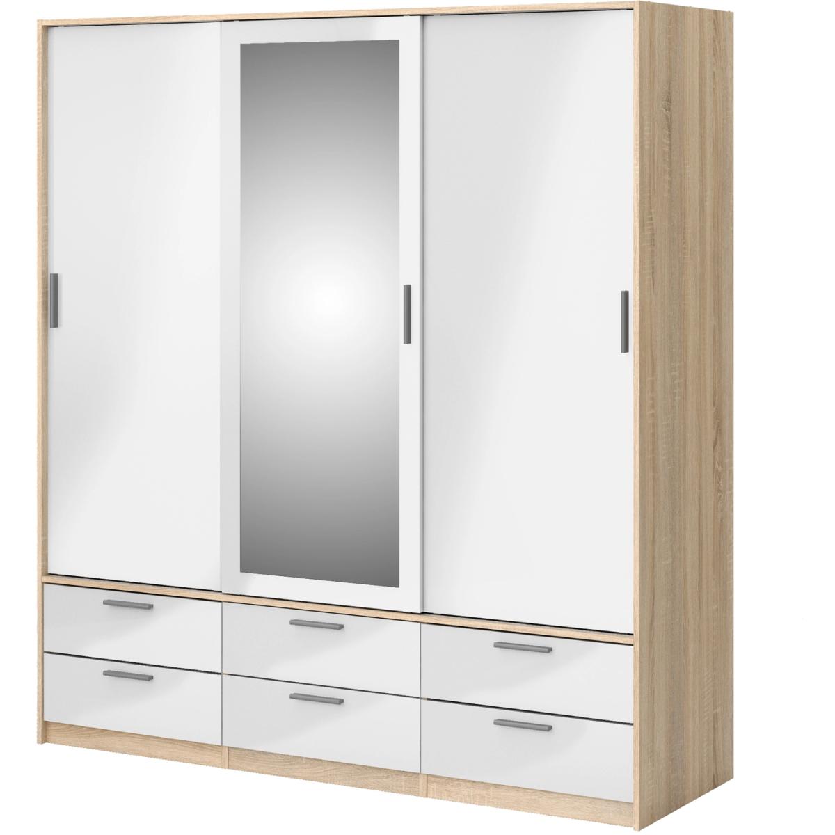 Mia Three Door Six Drawer Wardrobe - Oak, White Gloss