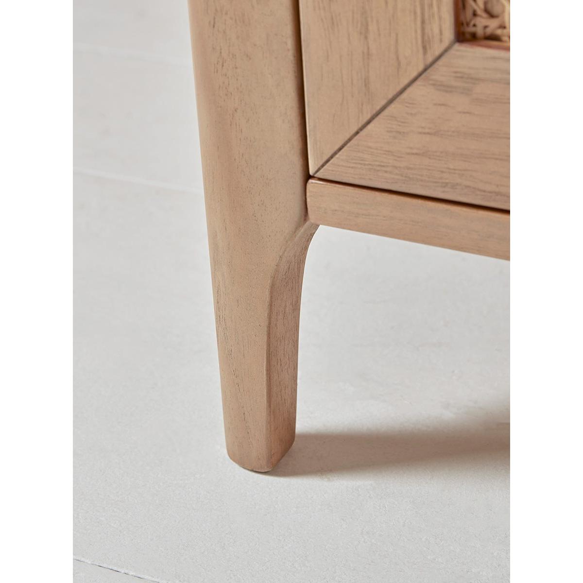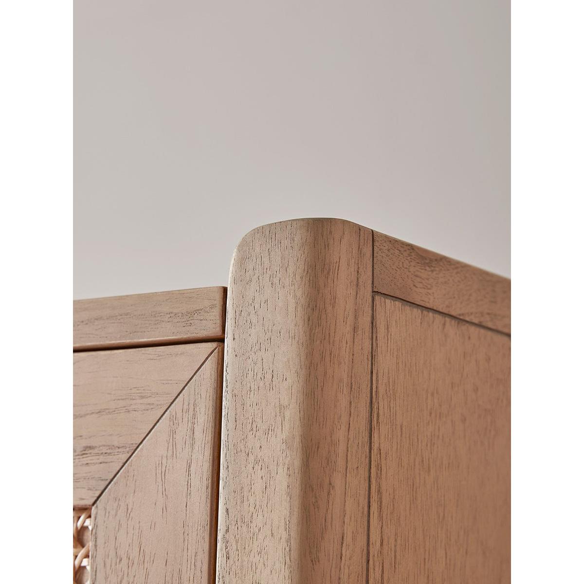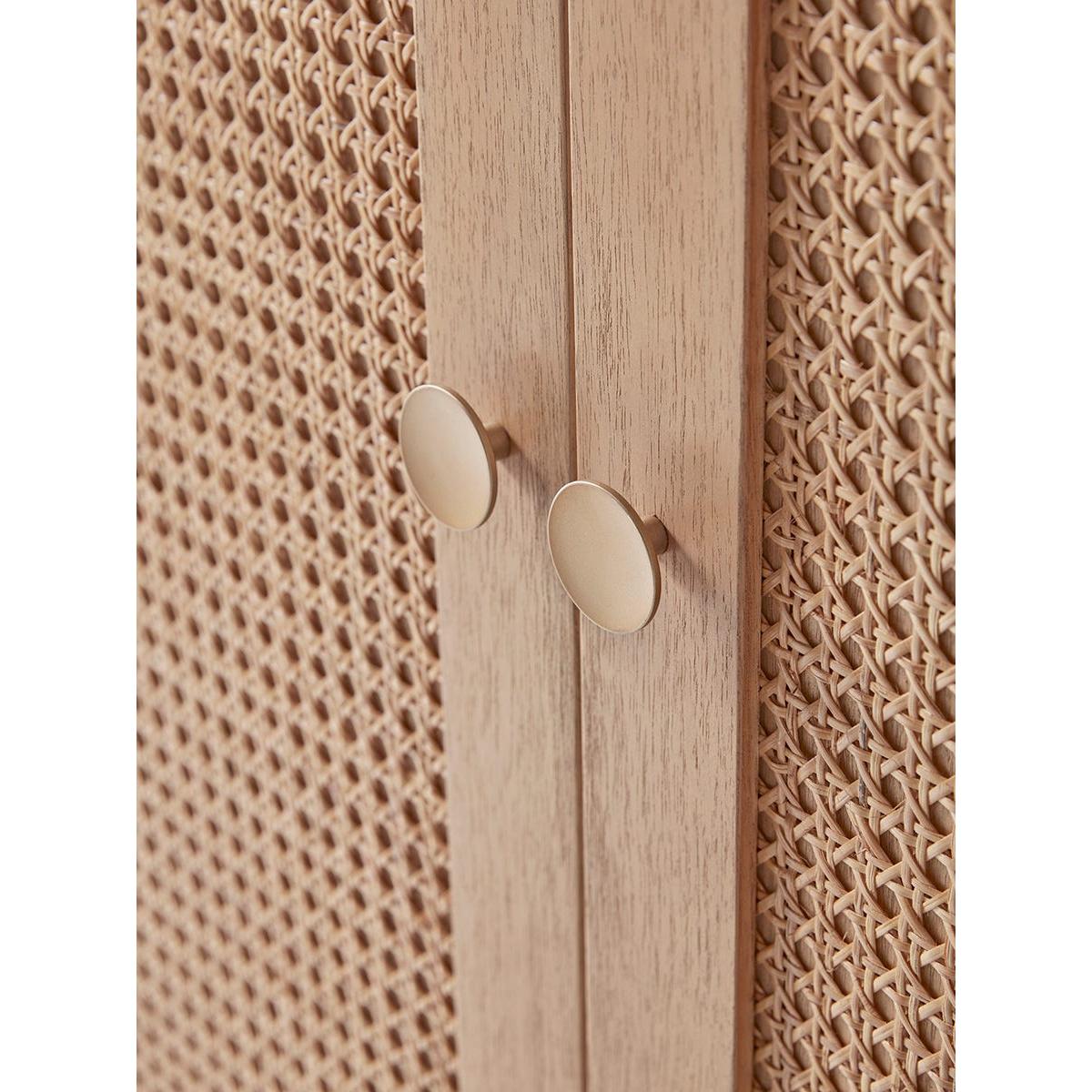 A shining light in the rattan revival, our Mia range features beautiful honey toned wood with textural woven inlays to the drawer and door fronts for a light and airy bedroom furniture range with a nod to mid-century style. Two rattan covered panels on the wardrobe doors create a textural effect that changes with the light. Delicate matte gold hardware pairs beautifully with the warming wood for a luxurious finishing touch. Discover the complete Mia bedroom collection.