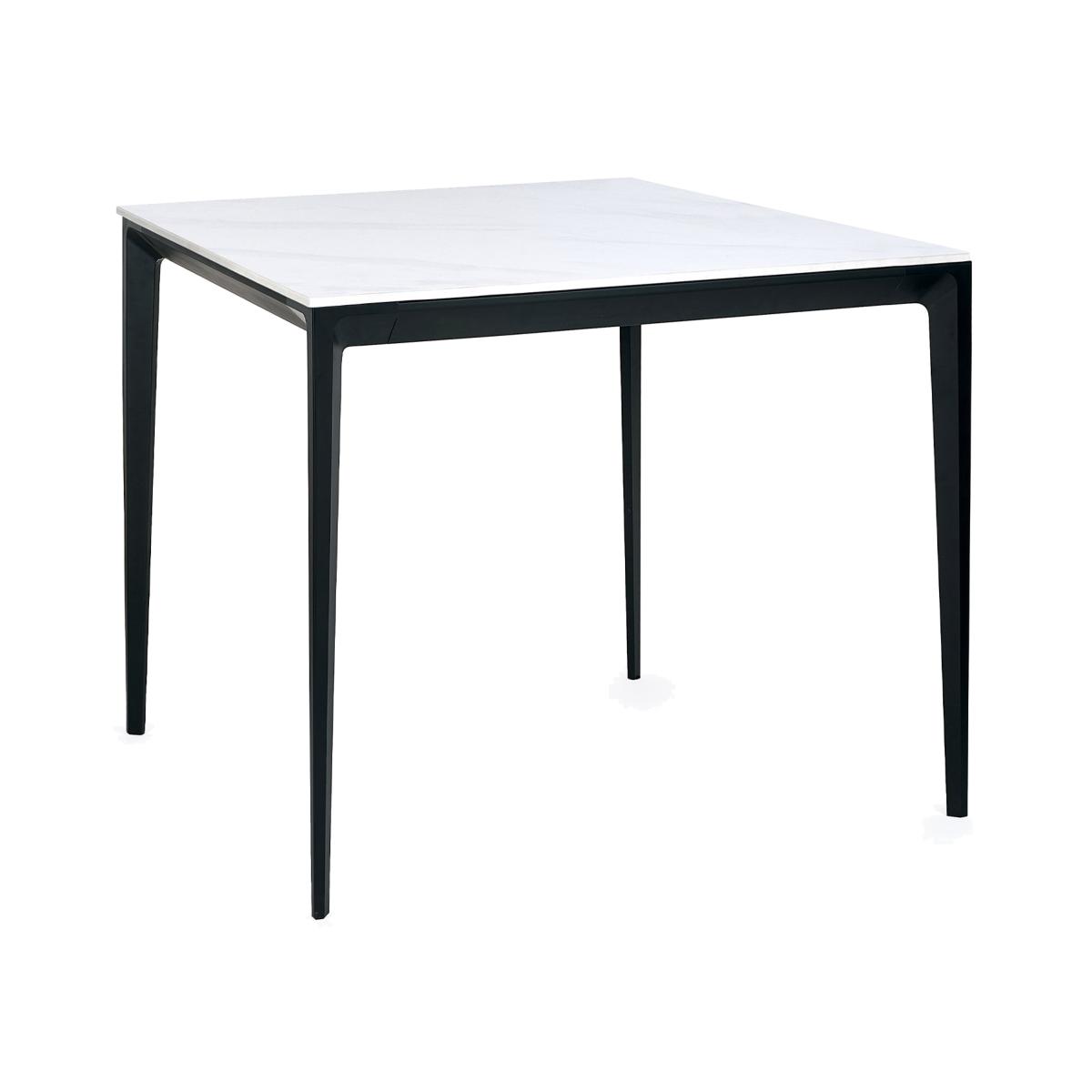 * Marble sintered stone top* Metal frame* Easy to assemble This dining table elevates your dining moments in style, offering a perfect fusion of sophistication and modernity. An exquisite piece featuring a stunning white marble sintered stone top, adding a touch of opulence to your dining space. Supported by a metal frame with sleek black legs, it combines sturdy support with a contemporary edge.
