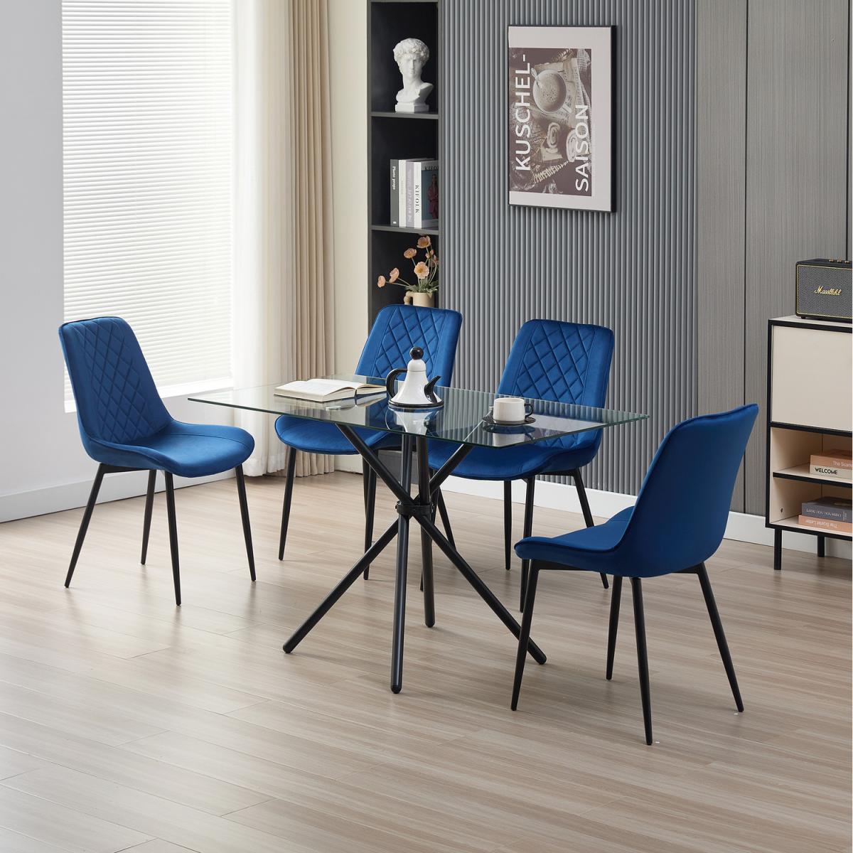 Miami Dining Table with 4 Amelia Velvet Chairs - Blue