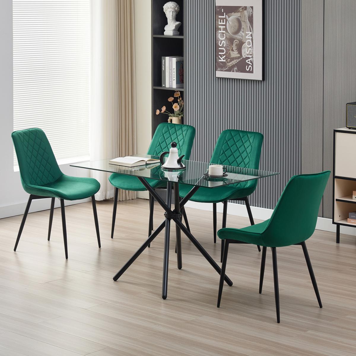 Miami Dining Table with 4 Amelia Velvet Chairs - Green