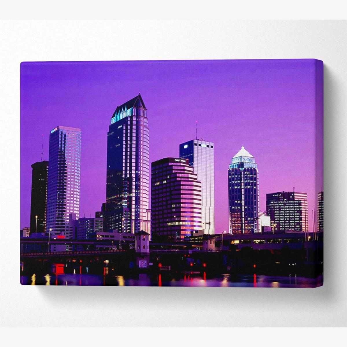 Miami Purple Nights Canvas Print Wall Art - Yellow / 101.6cm