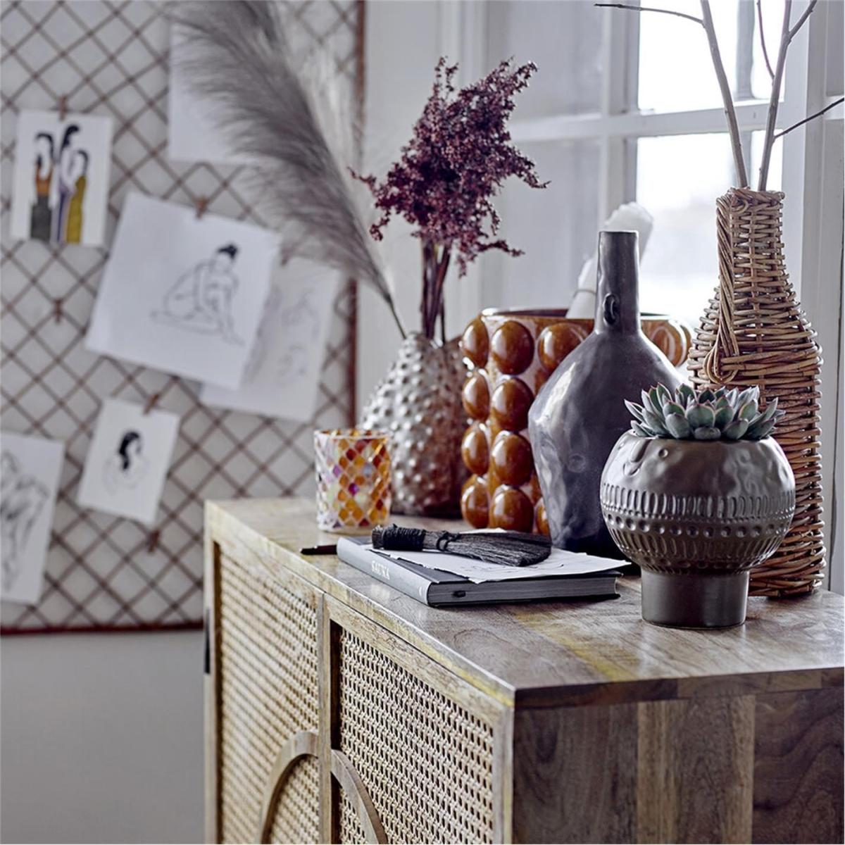 I love this vase for its earthy, artisanal feel - it adds a natural touch to both modern and rustic interiors. Its neutral tone and textured finish make it incredibly versatile, working well with a minimalist arrangement of dried botanicals or a burst of fresh stems for colour. It looks particularly striking on a wooden sideboard or a shelf layered with other natural materials. Practical styling tips include keeping floral arrangements simple to let the vase's character shine, and pairing it with pared-back accessories to maintain a cohesive look. Its understated design makes it a great statement piece without overpowering the space.