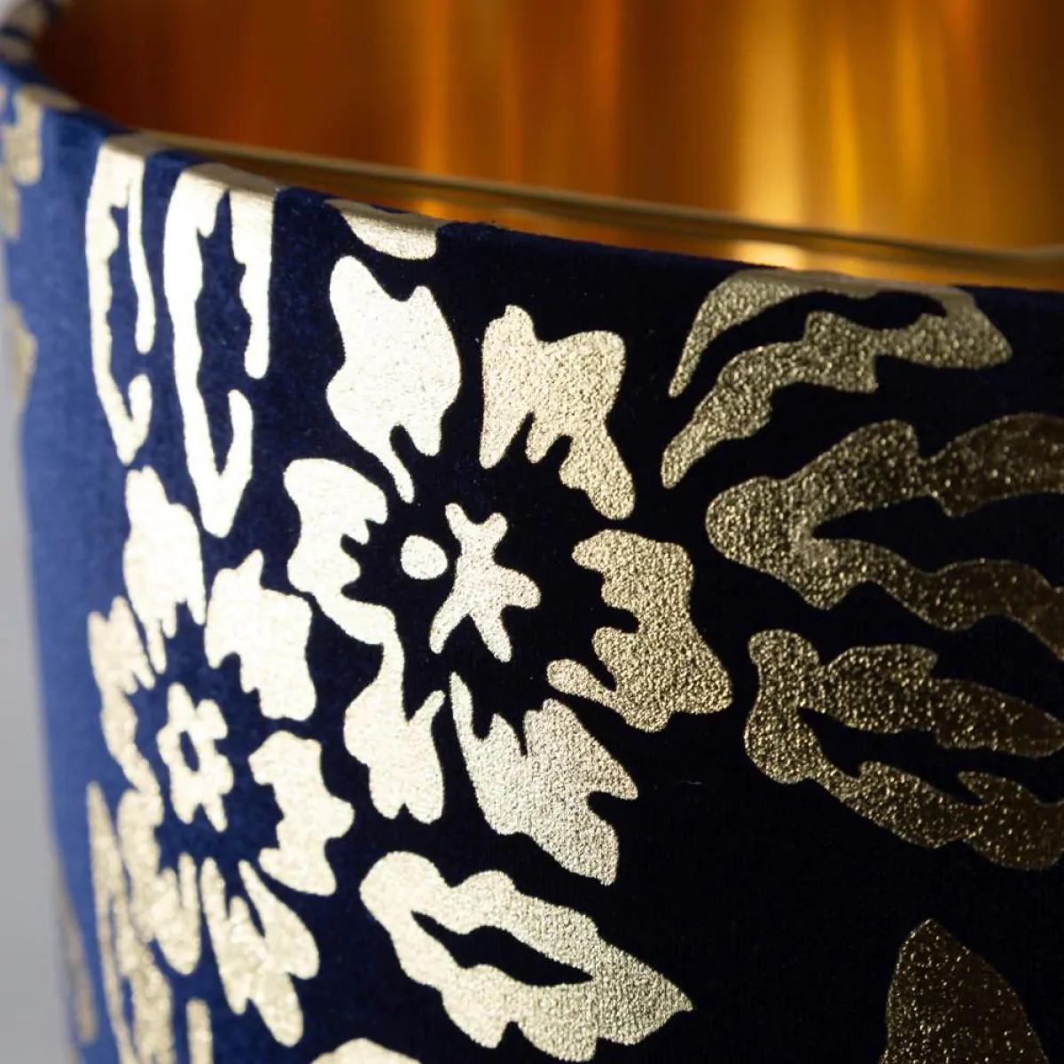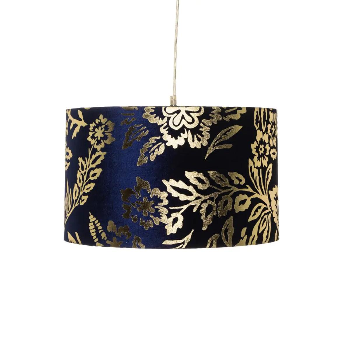 Get a stylish lampshade that brings a decorative touch to your home, with the Mica 40cm Velvet & Gold Print Easyfit Shade. This stunning shade simply attaches to your already installed light fitted, meaning no hard-wiring is required. The navy colour of this lampshade brings a modern touch to your home, while the velvet-effect floral pattern adds a vintage feel. Giving you unique lighting that is sure to stand out within your space. Create a consistent lighting theme through your home by using this shade to upgrade old table lamps and floor lamps too.