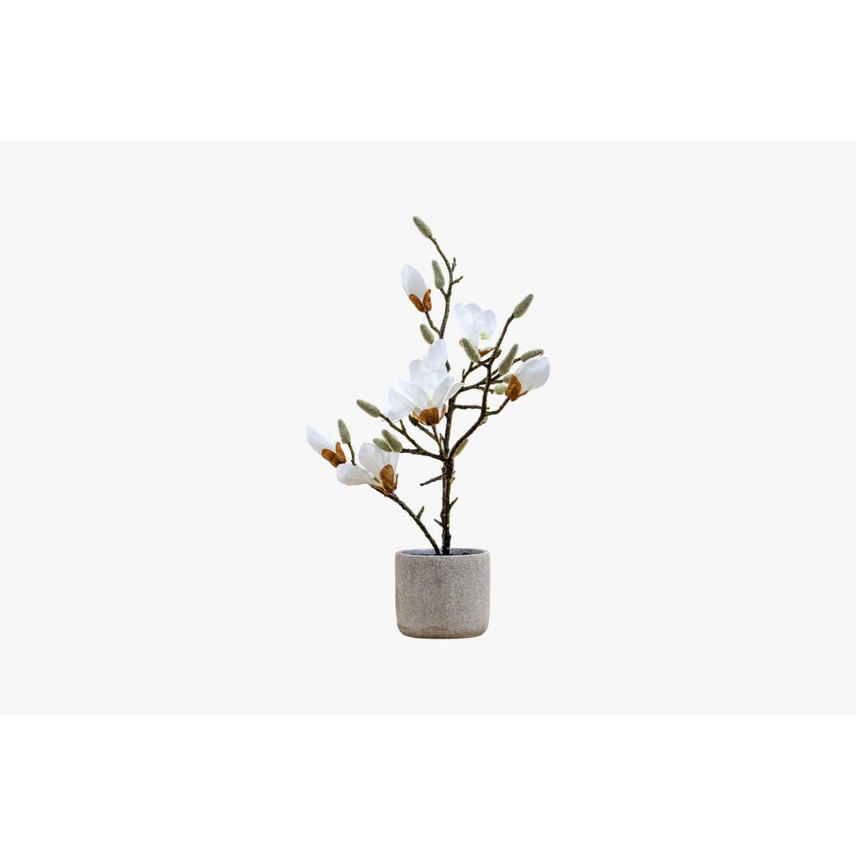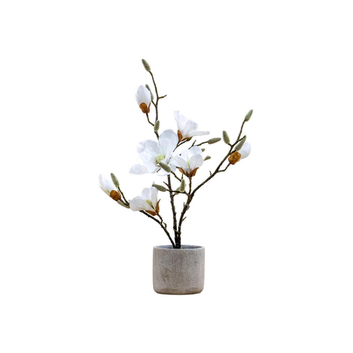 Bring a pop of natural colour to your home with the Mica Faux Potted Magnolia, perfect for adding fantastic colour and texture with a soft white finish, green and natural tonal highlights and dark brown branches, set in a lovely ceramic pot.