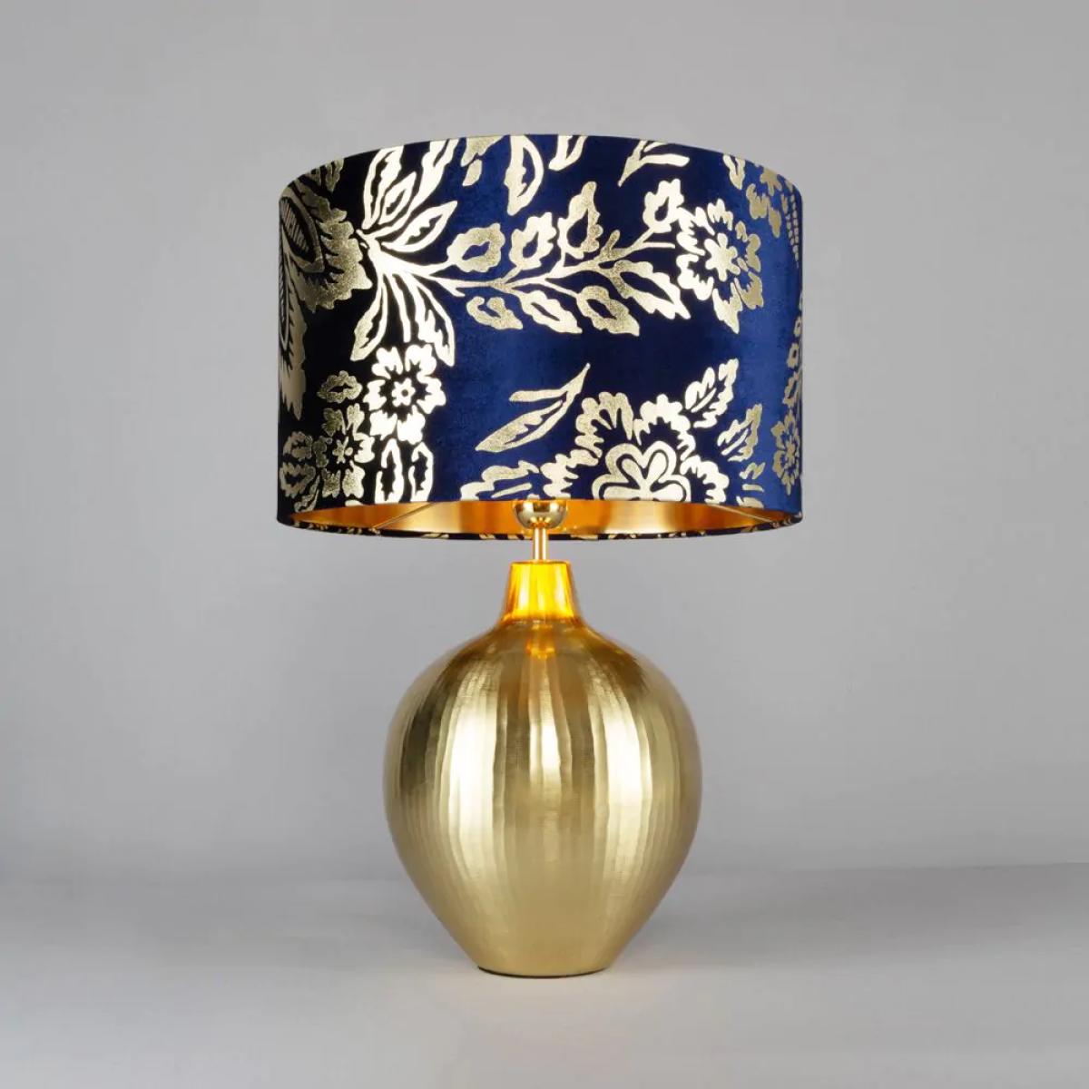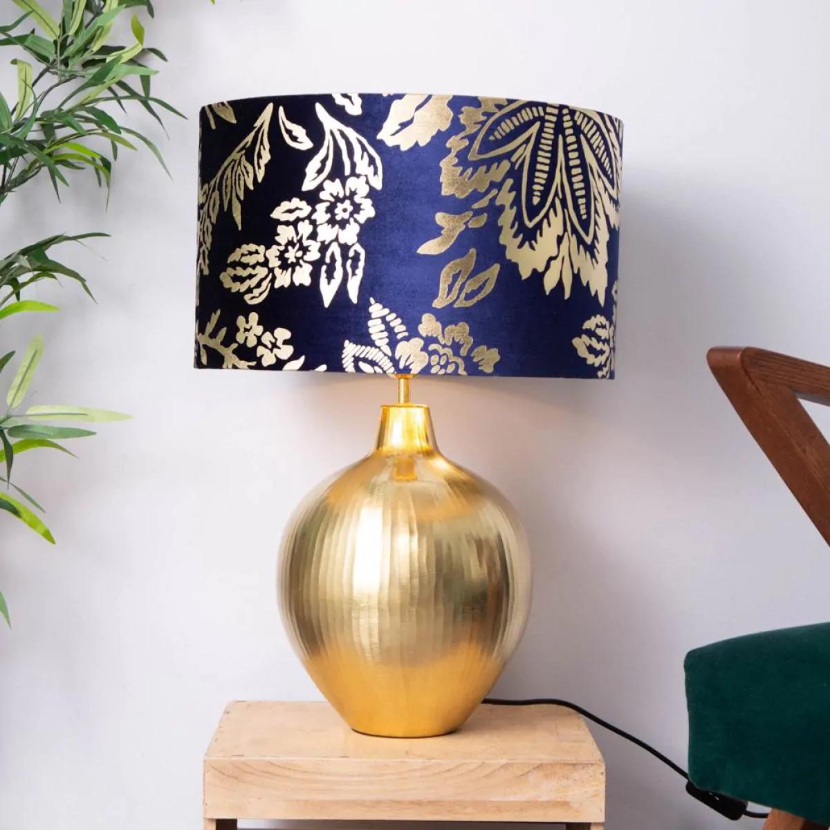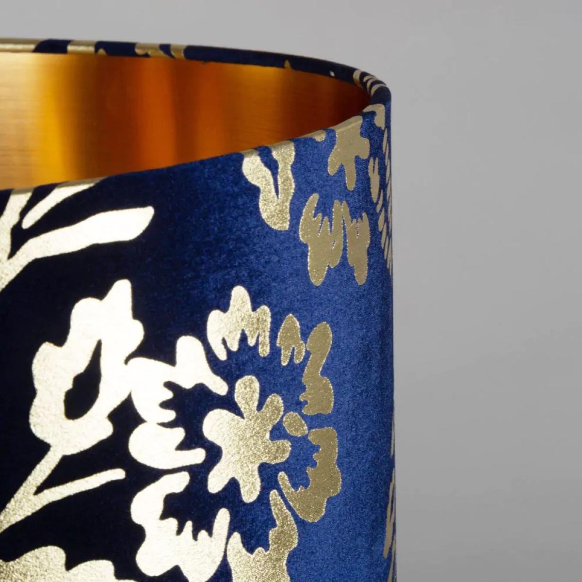 I love this little lamp for adding a fun, contemporary touch to a space. Its onion shape and bold brass base lend it a slightly vintage feel, while the blue patterned shade keeps it fresh and lively. It works particularly well in eclectic or modern interiors, sitting beautifully on side tables or console units. For best styling, consider pairing it with other brass or navy accents to create a cohesive look. Practically, it’s a versatile lamp that can bring warmth and personality to bedrooms, living rooms, or even a home office, providing both task and ambient lighting with a touch of style.