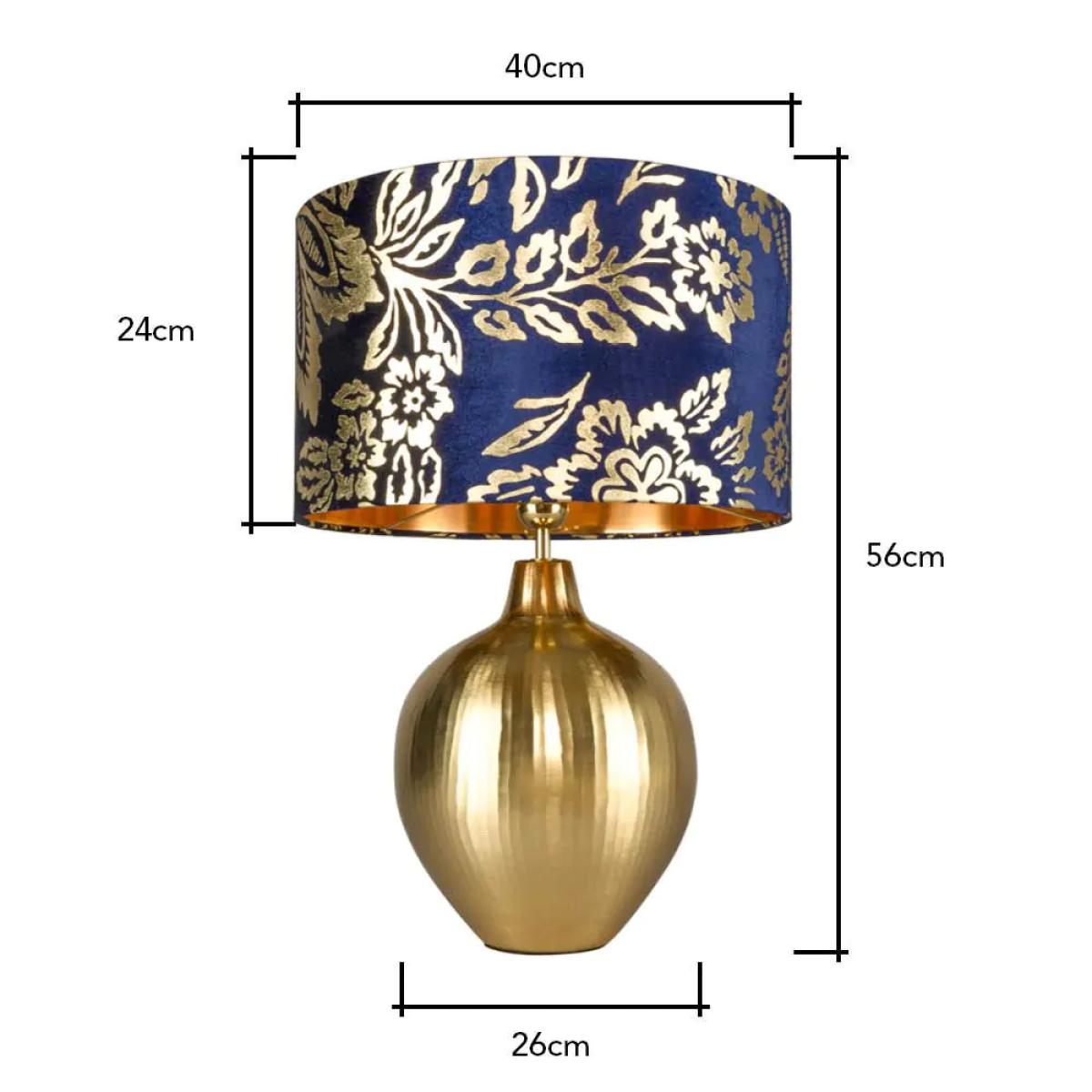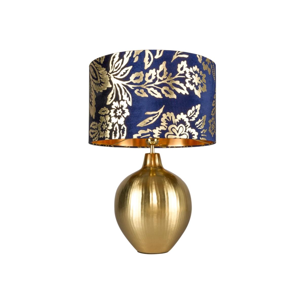 Add some regal elegance to your home with the Mica Onion Shaped Table Lamp. The classic silhouette of this gold table lamp fits wonderfully with modern decor. The navy shade is accented wonderfully by the chic gold finish of the base of this table lamp.