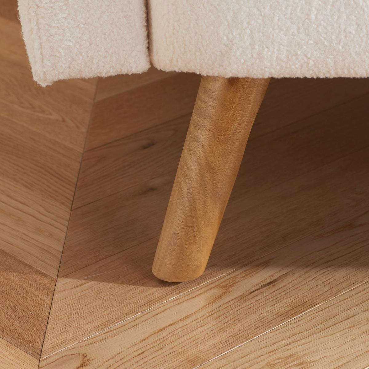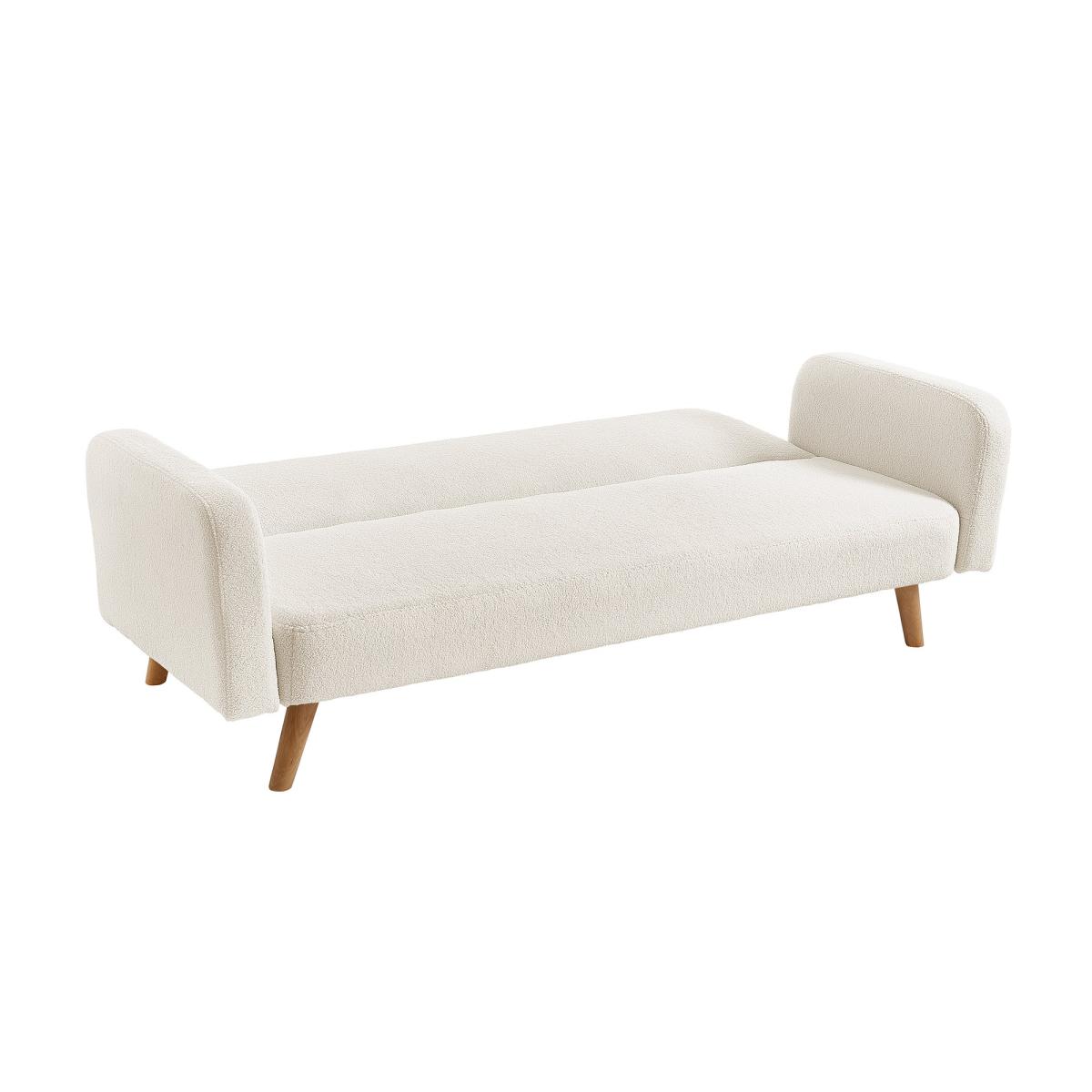 Embodying the essence of Scandinavian design, this sofa bed seamlessly merges with modern interiors, boasting clean lines and a minimalist aesthetic. The Micah sofa bed features a luxurious white teddy bear boucle fabric that created a cotemporary and elegant look. Beyond its comfortable seating, the click-clack mechanism effortlessly transforms it into a convenient sleeping solution. For added convenience, the sofa's legs are discreetly stored in a zipped compartment in the base before assembly.