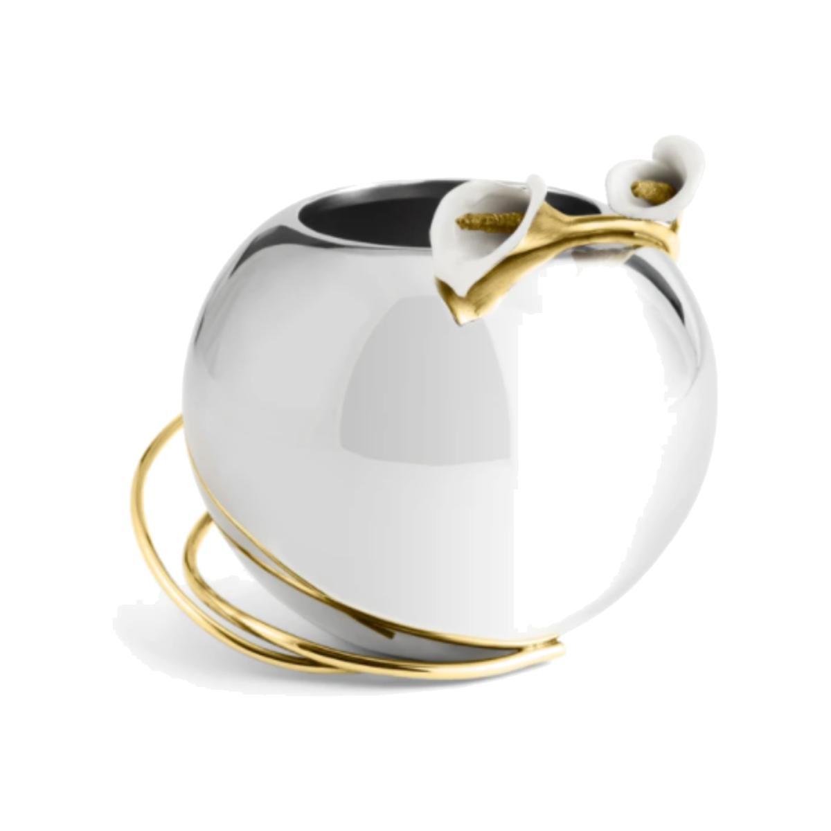 I love this flower-shaped vase for its modern yet elegant design, which makes it a versatile addition to various interiors. Its clean, contemporary form works well in both minimalist and more eclectic spaces, adding a sophisticated touch without overwhelming the decor. For styling, I recommend pairing it with fresh calla lilies or simple seasonal blooms to highlight its floral inspiration, but it also looks striking as a standalone decorative piece. Practical tips include placing it on a mantel or side table where its unique shape and subtle gold accents can really stand out, making it both functional and a visual statement within a room.