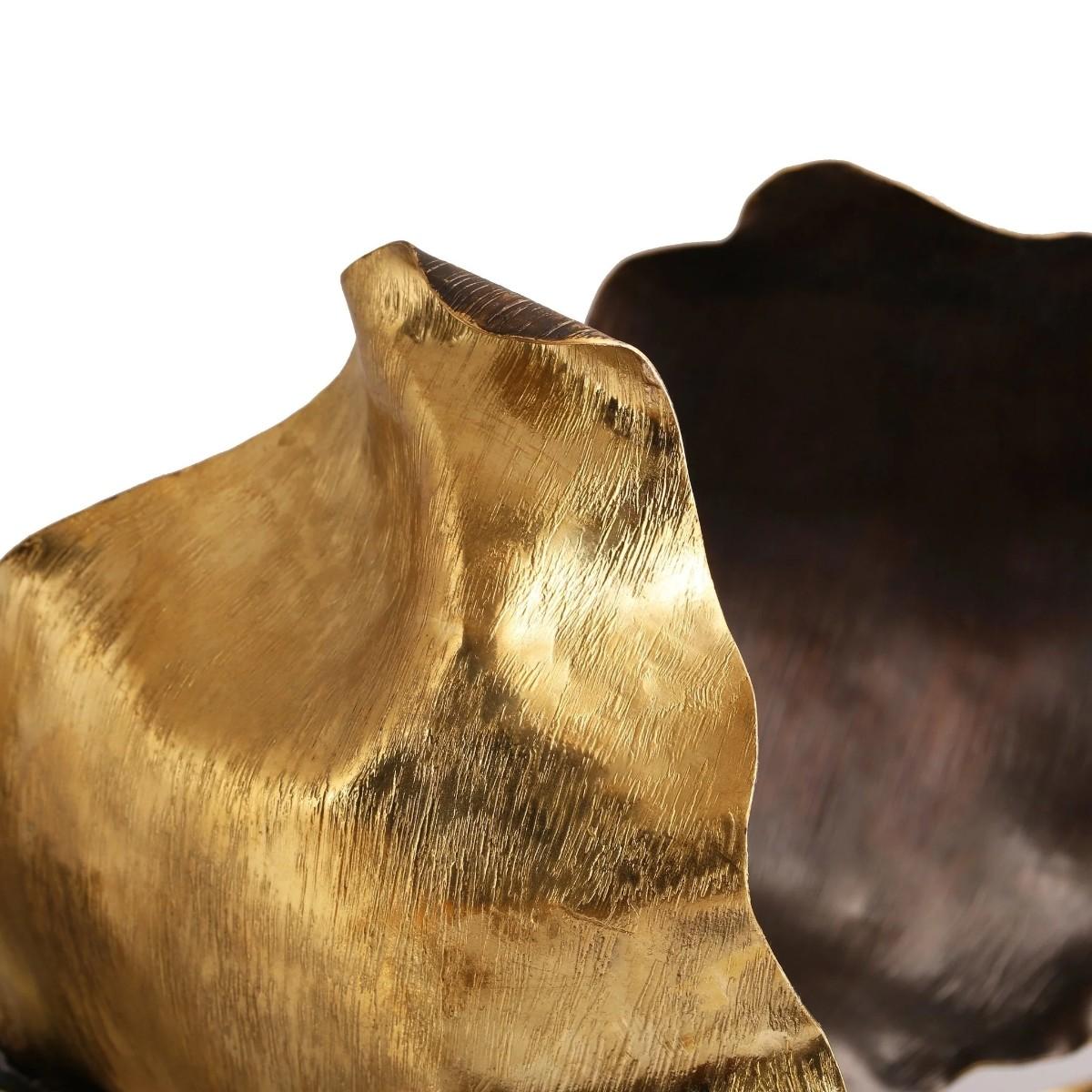 I love this Iris sculpture for its striking mix of textures and finishes, which makes it a versatile piece for various interior styles. It works especially well in contemporary or modern schemes where statement accents are key, but it can also add a touch of luxury to eclectic or art-driven spaces. When styling, consider placing it on a minimalist console or side table to let its sculptural qualities take centre stage, or group it with other metallic accessories for a cohesive look. Practical tip: pair it with neutral surroundings to highlight the gold and black contrasts, and keep other décor understated to truly let this piece stand out.