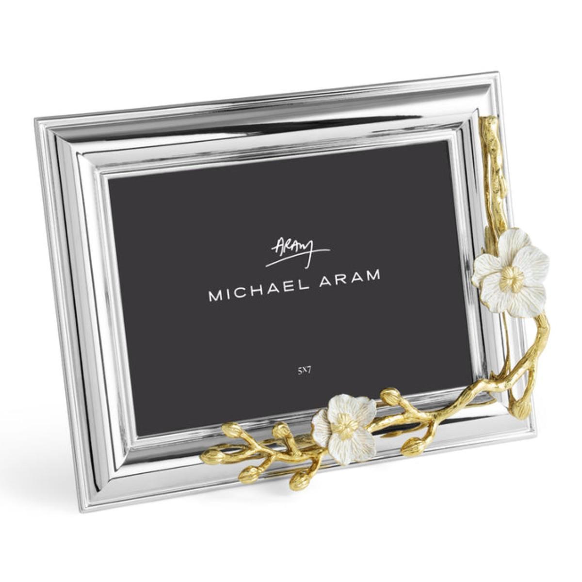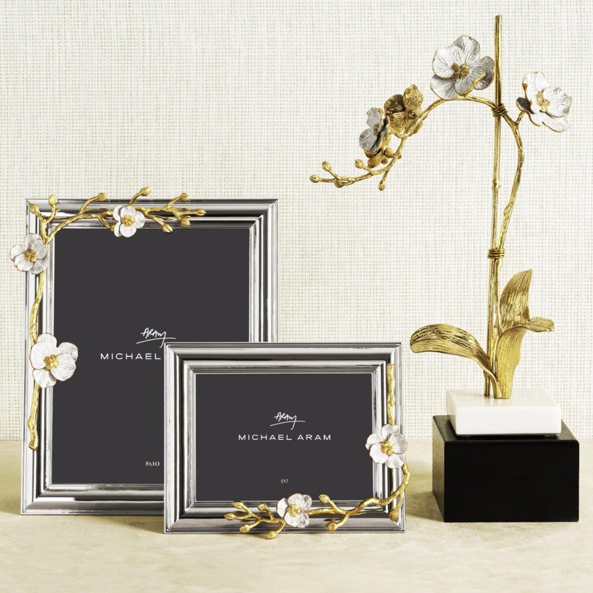 I love the Michael Aram orchid frame for its blend of elegance and subtle botanical charm, making it a versatile choice for a range of interiors. Its refined silver finish, complemented by delicate floral accents, works beautifully in both classic and contemporary settings-think layered on a mantelpiece, displayed in a bedroom, or used to add a touch of nature-inspired sophistication to a desk or side table. For styling tips, I recommend pairing it with similarly toned accessories or placing it amidst greenery or soft textiles to enhance its organic feel. This piece is particularly effective when showcased alongside personal, high-quality photographs or artwork, creating a timeless and curated look that adds refinement without overwhelming the space.