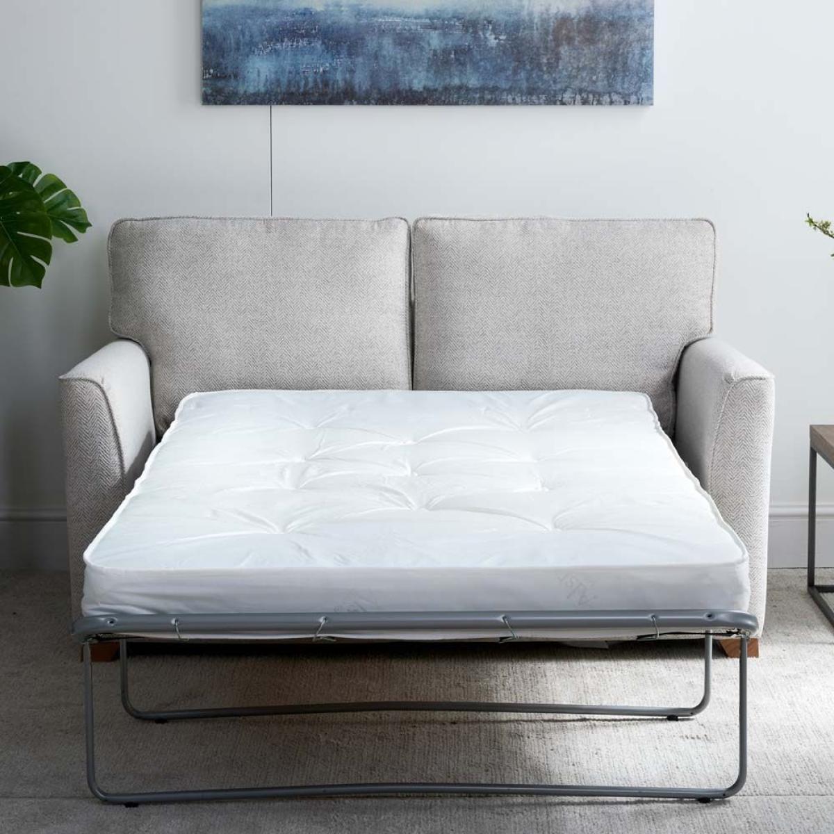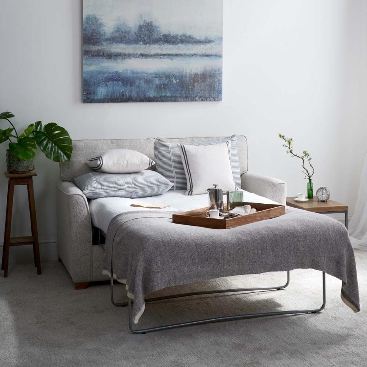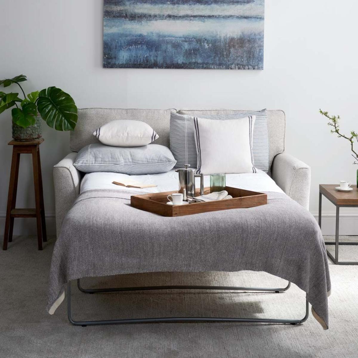 The Michaela Sofa Bed is perfect for hosting your overnight guests. A generous two seater and very comfortable as a sofa, the Michaela opens up to reveal a stunning bed with a Regal 'no turn' open coil mattress covered in a woven damask ticking. The sofa is upolstered in a chalk herringbone fabric, which is a versatile tone that works in so many homestyles.
