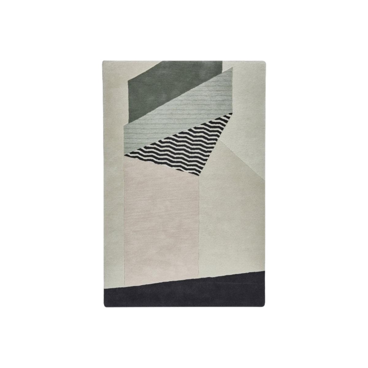 A striking contemporary "Descend" design rug by Sheffield based designer Michelle Collins, from her 'Geometric Abstract' collection made for your living room or bedroom. Crafted with 100% wool and hand-tufted by skilled hands. This beautiful wool rug in a cream colour is eye-catching and functional. With tonal colours of blacks, greys, beige and light pink this Geometric collection of rugs has a soft dense pile that is 1.6cm pile depth and is perfect for lofty apartments to give a minimalist chic feel to modern decor.    Add also our Anti-Slip Mat for extra protection.