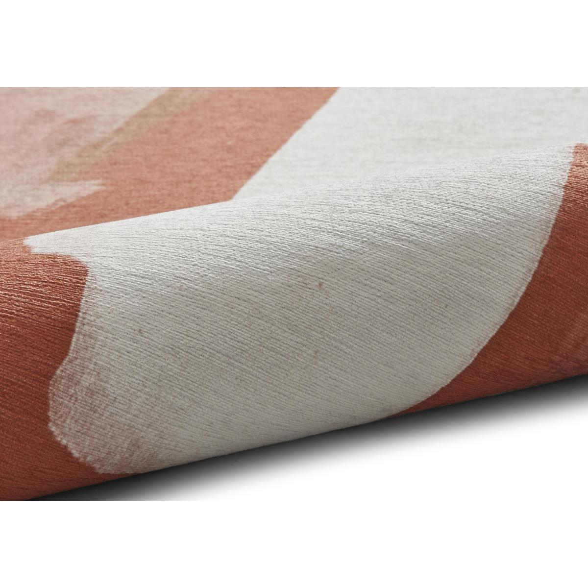 The Michelle Collins Abstract Art Terracotta and Cream Rug brings a delicate, feminine touch to any space with its colour-block brushstroke effect. Why you’ll love it. Beautiful brushstroke effect in a soft yet striking colourway. In soft shades of terracotta and cream. From the abstract paintings of respected artist Michelle Collins. Digitally printed to reproduce the modern art work exactly. Silky underfoot. Hardwearing, this rug suits high traffic areas. What you need to know. 100% Polyester. Machine-woven. Lightweight. Choice of three designs, each in two sizes. Easy to sponge-clean and care for.