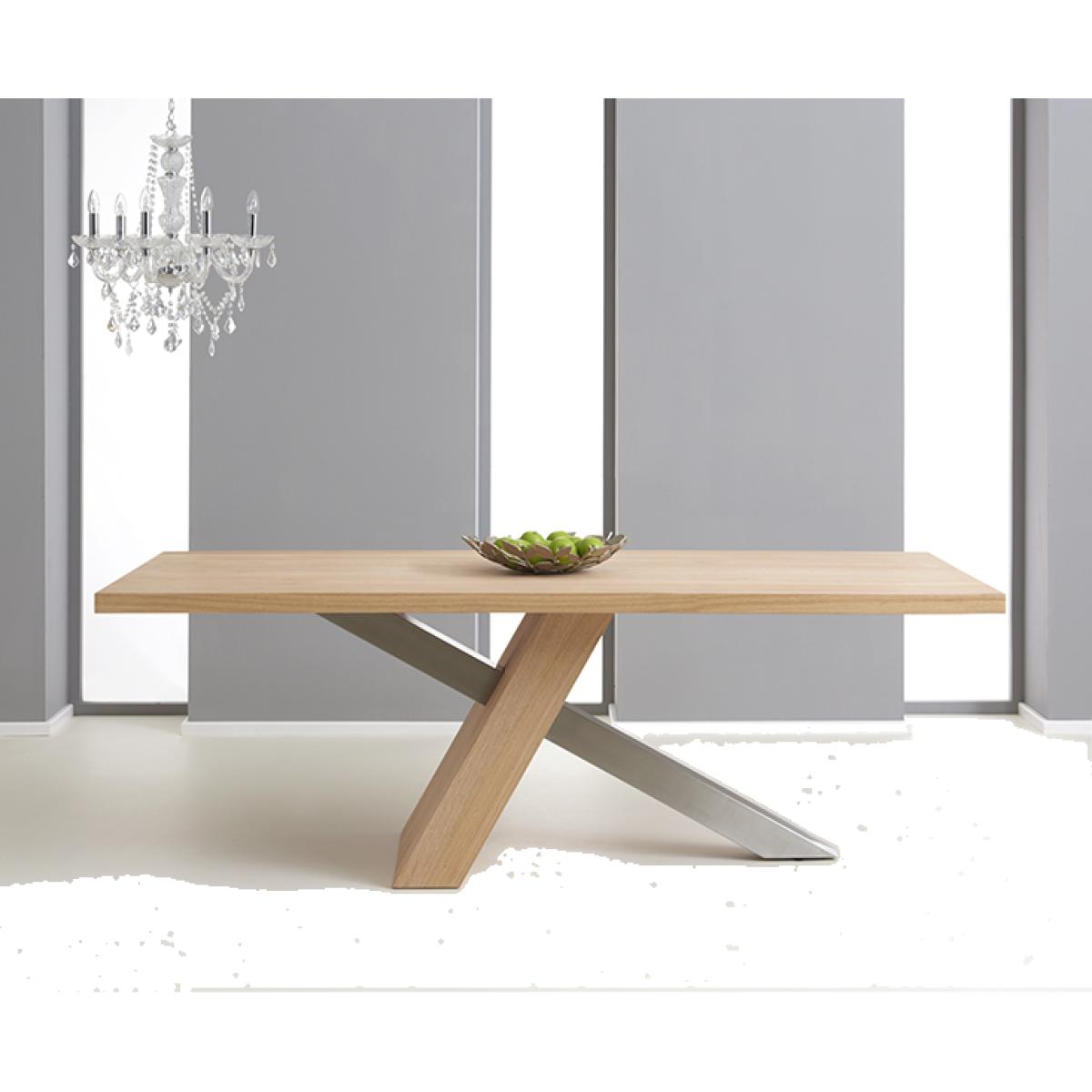 I’m a fan of this Michigan table for its clean oak top and bold metal leg, which give it an industrial-Scandi feel that suits everything from loft apartments to contemporary family kitchens. Its 180 cm length is generous without overwhelming smaller rooms, and the crossed base becomes a natural focal point - keep the tabletop clear or add a simple runner with a low vase to let the structure shine. Pair it with mixed-style chairs or a bench on one side for a relaxed look, layer a textured rug underneath and hang a streamlined pendant light above to complete the scheme.