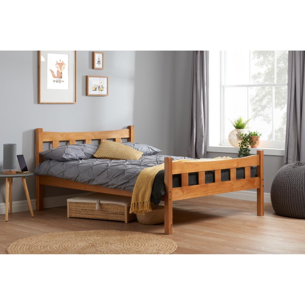 I love this double bed for its timeless, rustic charm and solid craftsmanship. Its vintage-inspired design makes it a versatile piece that works well in both modern minimalistic bedrooms and cosy, traditional interiors. The warm pine finish adds natural warmth and character, creating an inviting centrepiece. To style around it, consider layering with textured bedding and neutral or muted tones to emphasise its natural wood look. Pairing it with simple, understated furniture or even contrasting it with contemporary elements can create a balanced, lived-in feel. Practical tips include using under-bed storage to maximise space and keeping the bedding simple for an effortlessly polished look.
