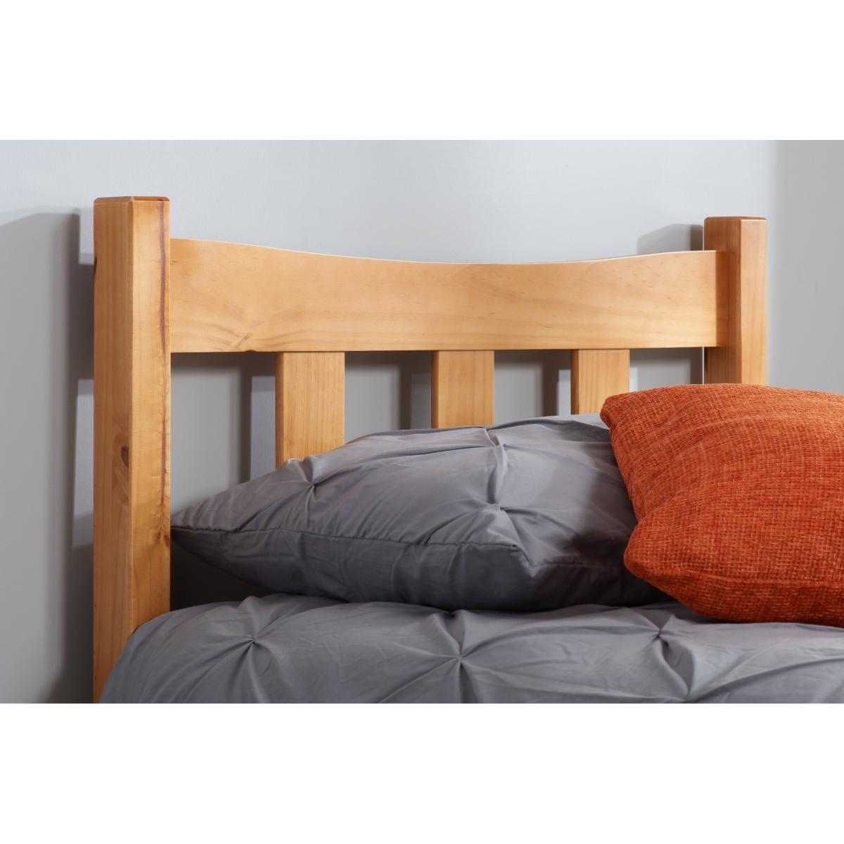 I love this one for its classic, rustic charm and versatility. The natural pine finish works well in both traditional and Scandinavian-inspired interiors, adding warmth without feeling heavy. It’s a practical choice for smaller spaces or guest bedrooms, especially because the under-bed storage offers handy organisation. To style it, consider bed linens in soft neutrals or muted tones for a calm look, and add textured cushions or throws for visual interest. Pairing it with simple, functional bedside tables and minimal decor keeps the overall vibe clean and inviting, making it a timeless addition that suits a variety of schemes.