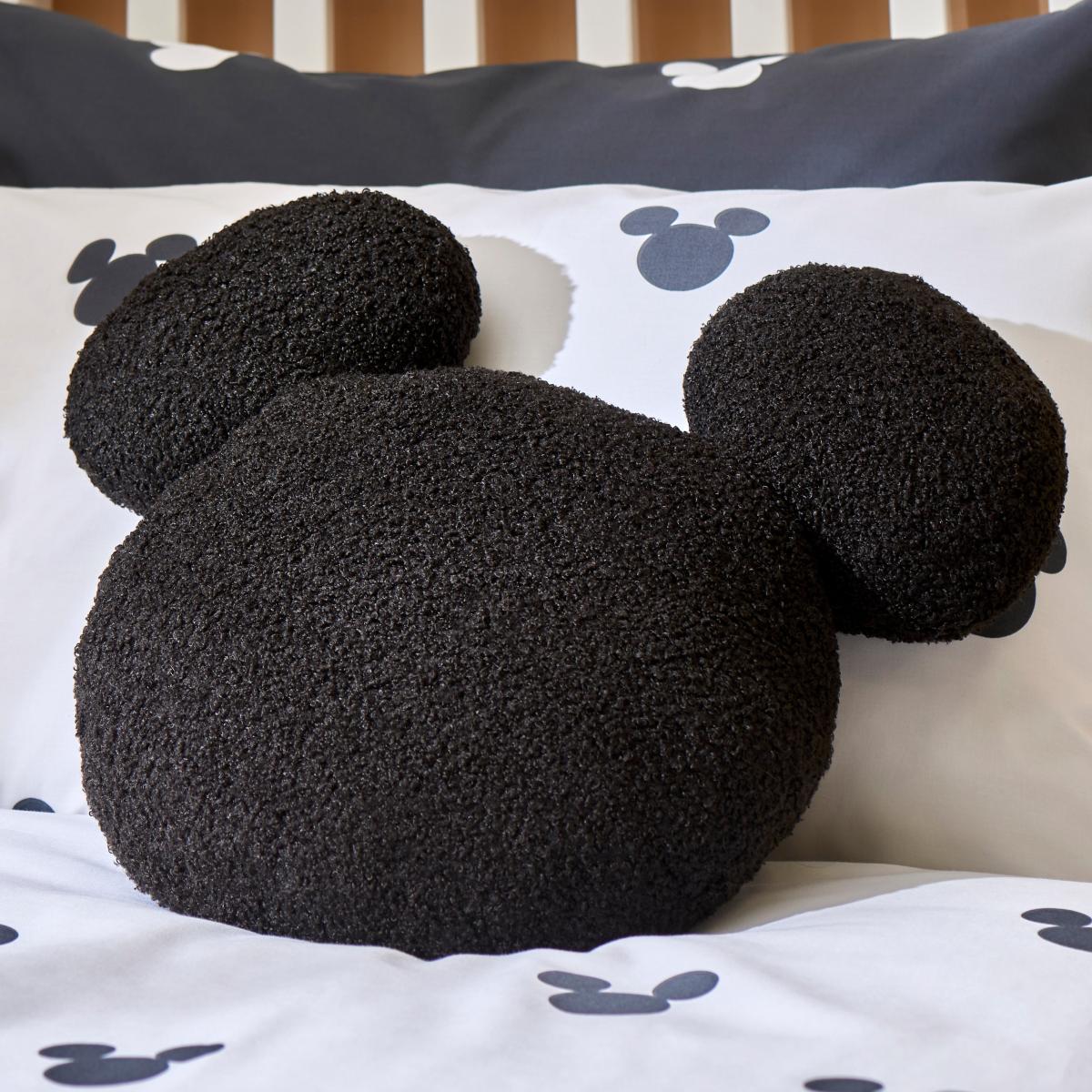 * Disney Mickey Mouse shape* Plain block design* Soft feel* Coordinating bedding available Great for bringing Disney into a room, this cushion features a 3D Mickey Mouse design. With a soft feel, this cushion has been crafted using a boucle fabric.