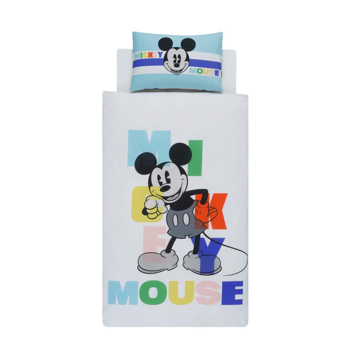 * Printed design* Reverse design* 100% Cotton* Machine washable Add a touch of classic Disney charm to your child’s bedroom with this fun Mickey Mouse duvet set. Featuring Mickey in bold graphic designs, this duvet brings timeless Disney magic to life. The reverse print offers a simpler, all-over design for a fresh alternative look. Made from 100% pure cotton, this duvet set is both soft and durable, providing comfort and style for your little one’s room.