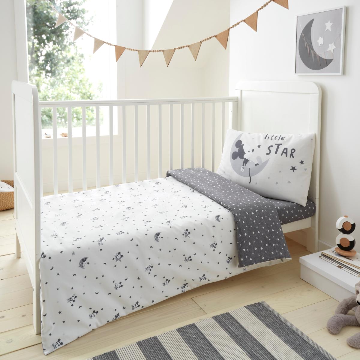 Mickey Starry Night 100% Cotton Duvet Cover and Pillowcase Set White/Grey
