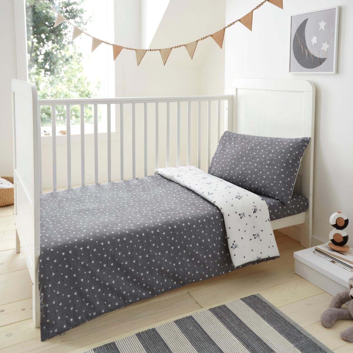 This Mickey Starry Night bedding set is a great choice for adding a calm, celestial touch to a child's room. I love its neutral grey and white palette, which makes it versatile enough to complement a variety of interior styles-from Scandi minimalism to more colourful, eclectic schemes. The cotton fabric is practical, durable, and easy to wash, making it ideal for everyday use. To style it effectively, consider pairing with soft-textured accessories like plush cushions or a cosy throw to add warmth. It also works well in themed spaces, especially when combined with other night sky or moon-themed decor, creating a peaceful, dreamy atmosphere that’s perfect for bedtime routines.