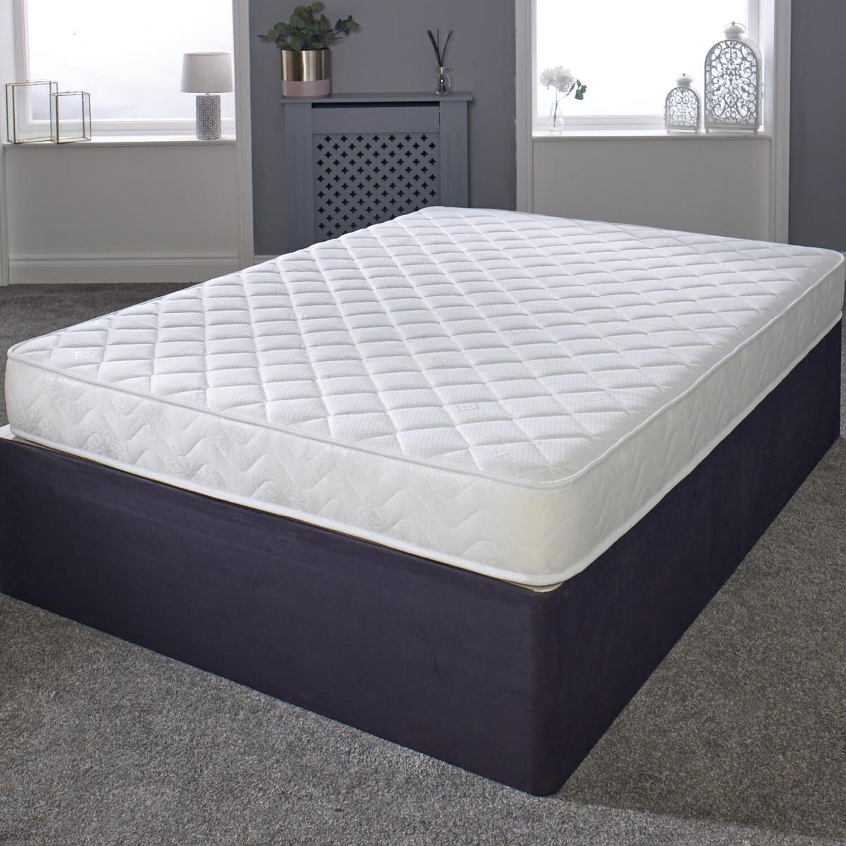 This is a quality memory foam-topped, quilted mattress that represents great value for money. This is an affordable mid-budget mattress that will suit most needs and is approximately 7 inches deep. Containing a 13.5 gauge European coil spring unit for durability and topped with memory foam for comfort.