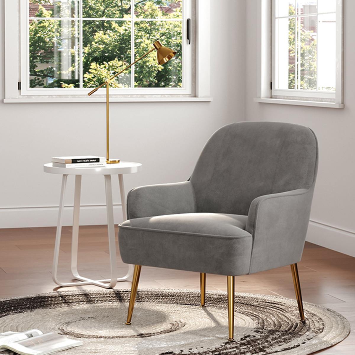 Express your flair for style with this modern chair. This chair is upholstered in micro velvet and given soft deep padding that will provide total comfort and support when you take a seat. The chair legs have an adjustable leveller floor protector to stay balanced and prevent scratches and reduce sharp noise. It's designed to be used for the living room, bedroom, etc.