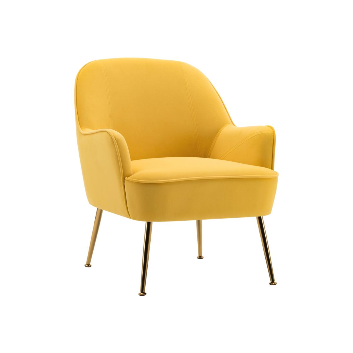 I’m a big fan of this yellow velvet armchair for its clean lines and soft, tactile finish - it adds a pop of warmth without feeling over-the-top. It sits equally well in a pared-back Scandi living room, a modern-industrial loft or even an eclectic study corner. For styling, pair it with a neutral sofa or light oak side table and introduce a patterned cushion or slim throw in moss green or slate grey to ground the look. Position it beside a floor lamp or houseplant to create a cosy reading nook that feels both relaxed and intentional.