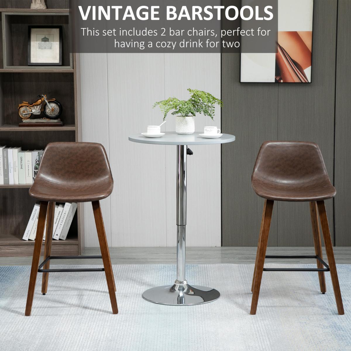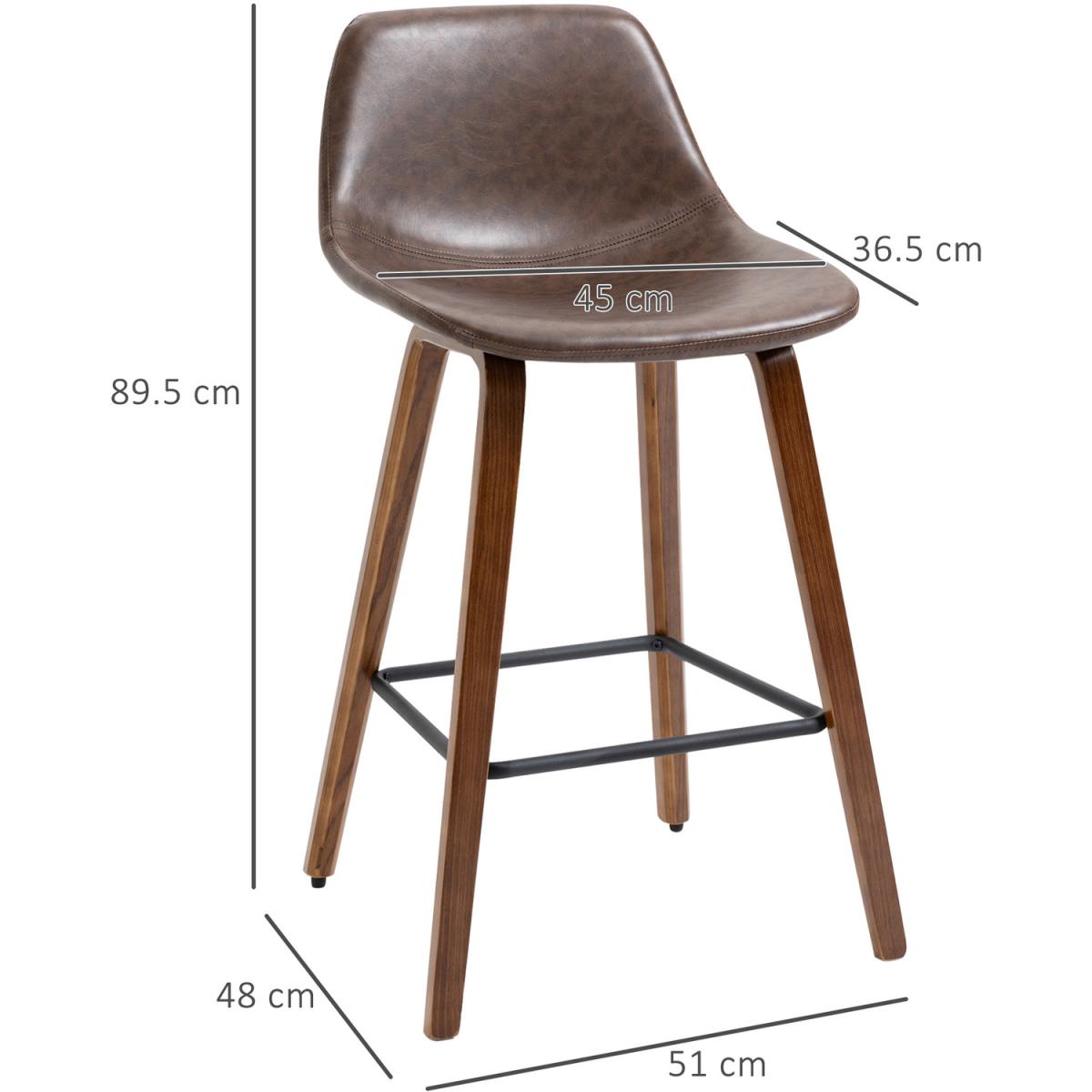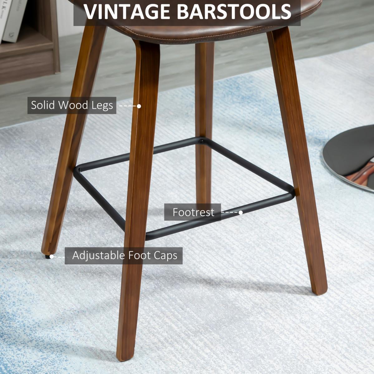Take a seat in true retro style - thanks to these two bar stools from HOMCOM. Each barstool is covered with PU leather in a cool worn-out finish. The smooth surfaces are easy to clean. The curved backrest and footrest support your posture. Fitted with a wooden base, in an 'A' shape to keep steady. Two adjustable feet for continued balance.