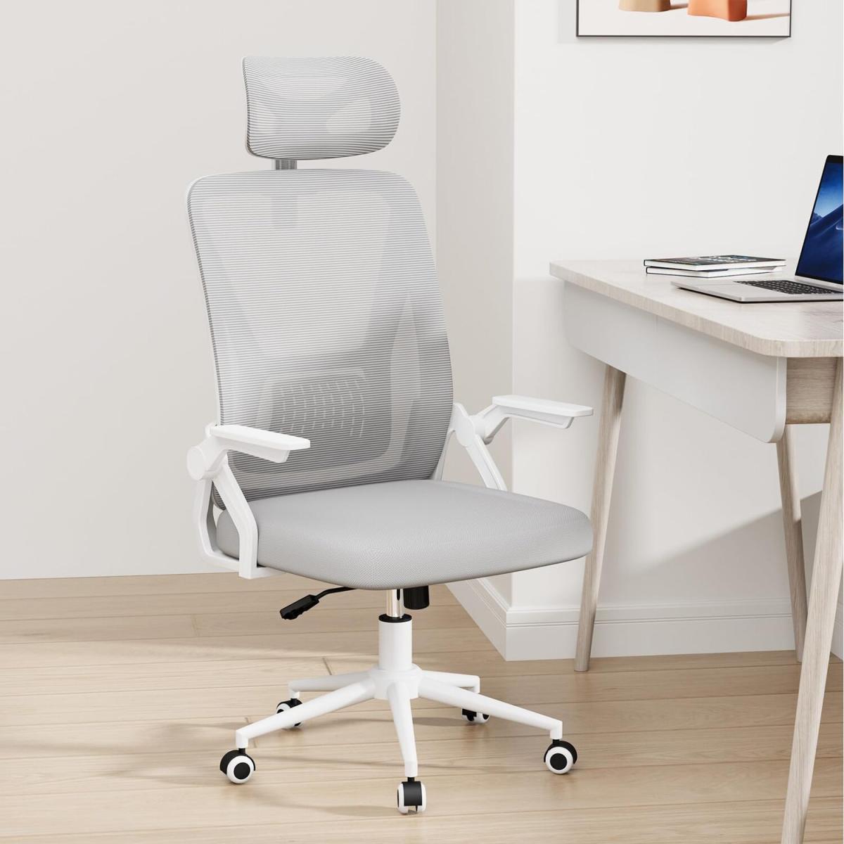 The computer chair adopts ergonomic design in all aspects, and the backrest of the home office chair perfectly fits the curves of various parts of the human body, relieving the pressure on the shoulders, back, waist and buttocks. Our desk chair's headrest adopts 2D design. You can adjust the headrest up and down 10cm and rotate it 90 degrees to fit your head or neck. The chair with headrest provides you comfortable support and relieves the pressure on your back spine. The desk chairs for home office are equipped with flip armrests, which can be pushed under various desks to save space effectively. The mesh chair armrests are covered with soft sponge to provide comfortable support for your hands. Our home office chair adopts 2-SGS gas rods and heavy-duty metal bases, which have excellent stability. The cross-leg office chair is made of five-claw metal, which is sturdy and durable, unlike nylon or plastic like most chairs. The seat cushion of our office chairs for home is soft, comfortable, and durable. The mesh backrest is breathable, elastic, and well-supported. The armrests of the ergonomic chair are also carefully covered with mesh and sponge. The home office chair comes with a full set of tools and manual, and installation only takes about 20 minutes. The chair has a rocking function, and the height can be adjusted to about 10 cm.