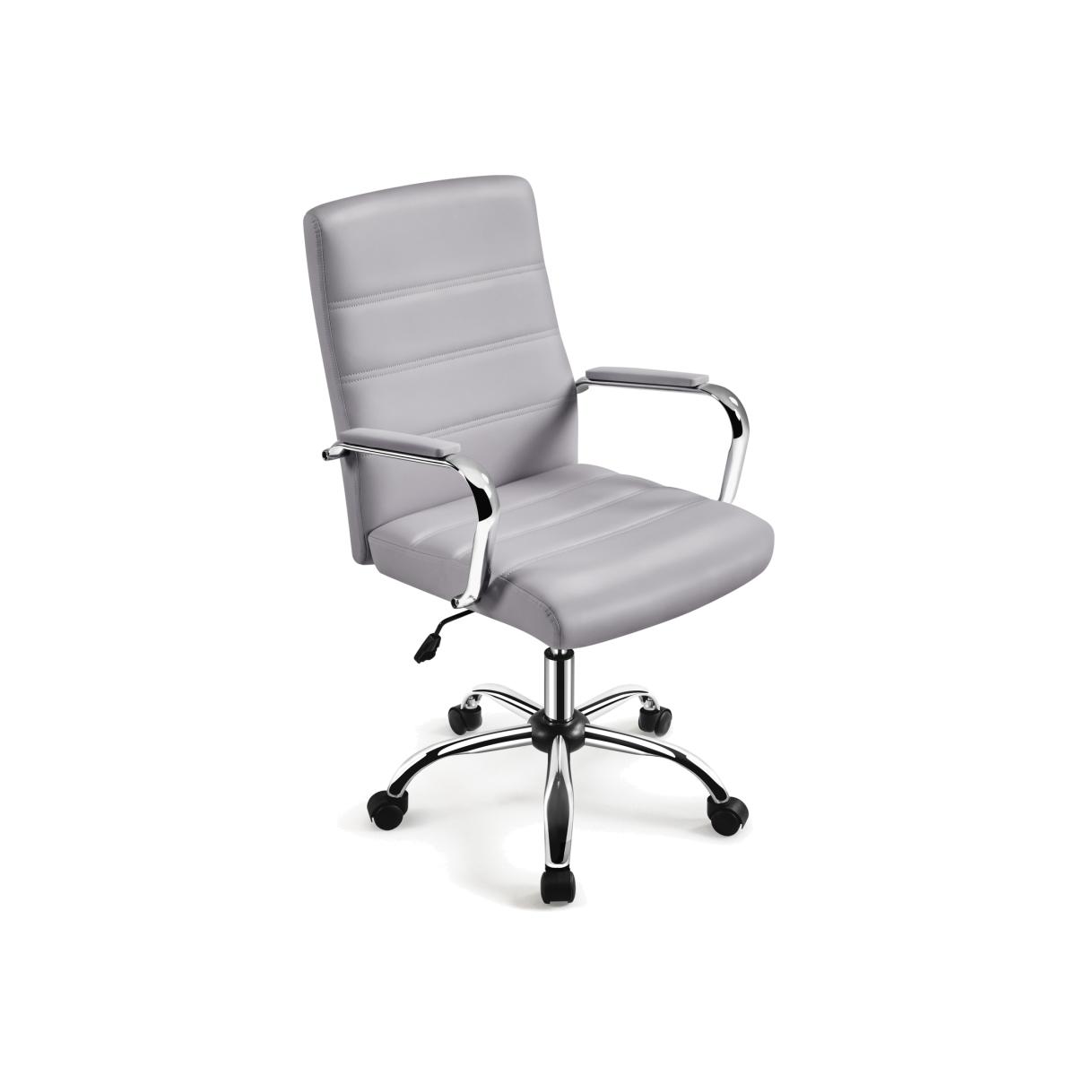 A desk chair like this is an ideal option for getting a comfy sitting experience, while also introducing an on-trend contemporary look. We apply quality PU leather upholstered fire retardant foam cushioning for the seat and back, and antirust chrome-plated steel for the arm and star base. Twisting and turning about is integral within the office and optimal desk use. The 360 swivel seat and wheels of this mid-back office chair ensure the must-have mobility. And with the tilt-lock mechanism and seat height adjustment, you can customize your seat to your preference.