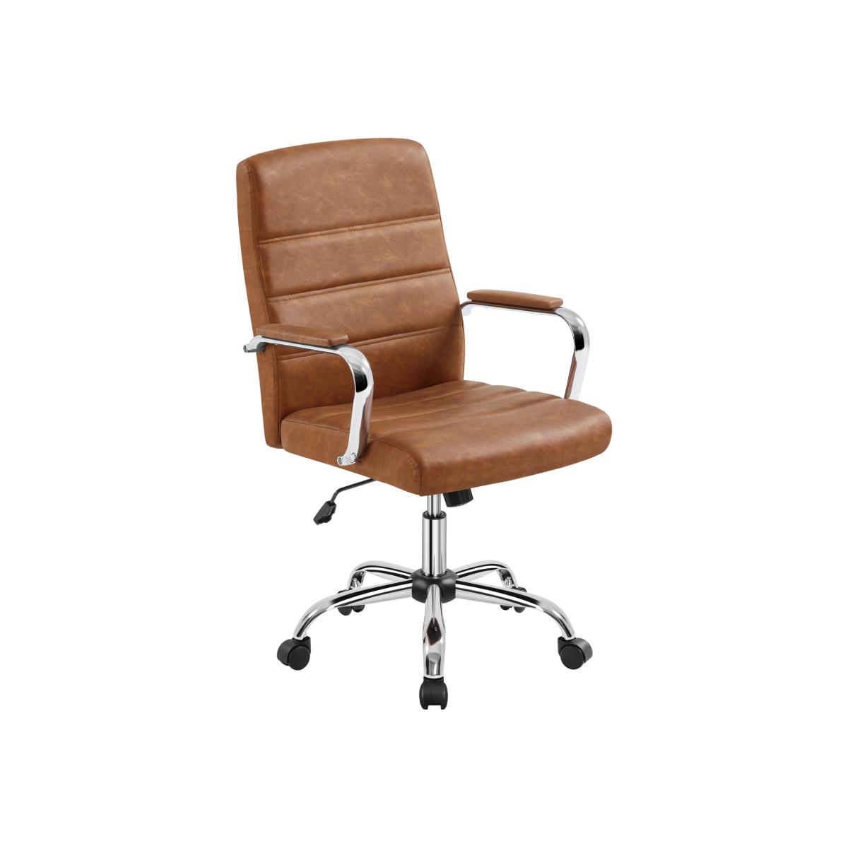 A desk chair like this is an ideal option for getting a comfy sitting experience, while also introducing an on-trend contemporary look. We apply quality PU leather upholstered fire retardant foam cushioning for the seat and back, and antirust chrome-plated steel for the arm and star base. Twisting and turning about is integral within the office and optimal desk use. The 360 swivel seat and wheels of this mid-back office chair ensure the must-have mobility. And with the tilt-lock mechanism and seat height adjustment, you can customize your seat to your preference.