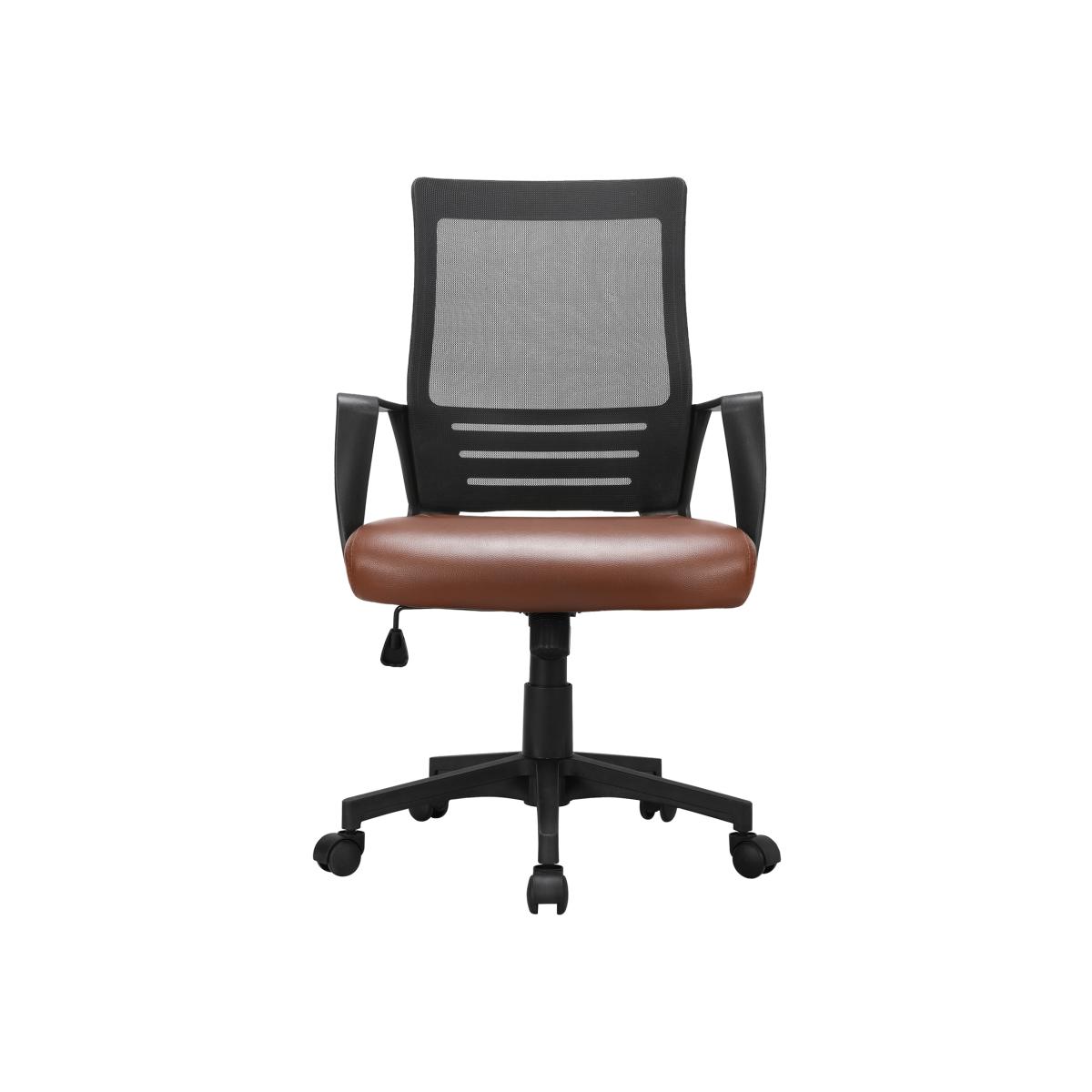 Mid Back Swivel Lumbar Support Desk Leather Padded Seat - Brown