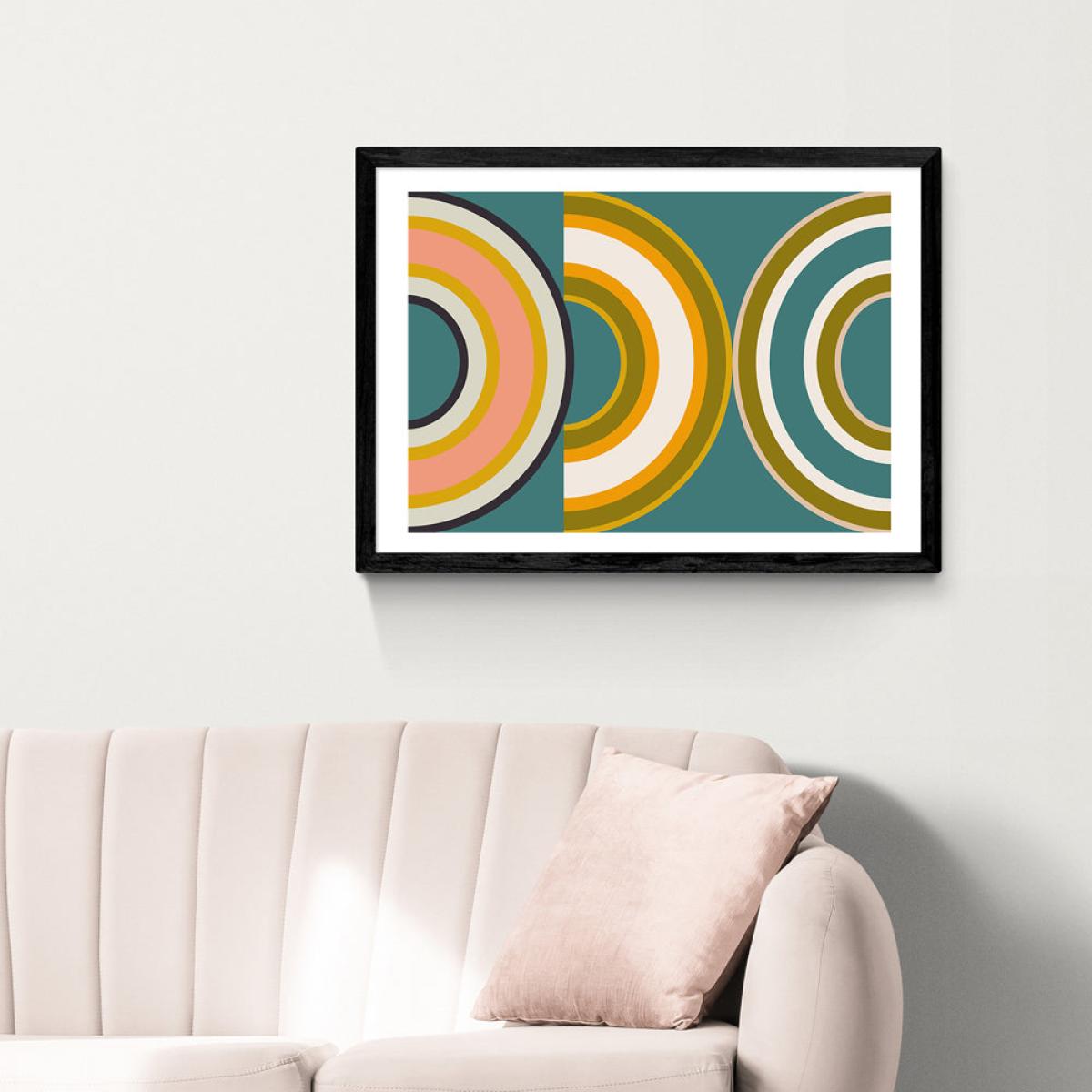 I love the Mid-Century Arch print for its bold geometric design and versatility. It works particularly well in contemporary or mid-century styled interiors, adding a splash of colour and visual interest without overwhelming the space. This piece pairs nicely with neutral palettes-think soft greys, beige, or muted tones-allowing the artwork to take centre stage. For practical styling, hang it above a sofa or sideboard to create a focal point, and consider complementing it with other accessories in similar colours or sleek, minimal frames for a cohesive look. It’s an excellent addition for injecting personality into an otherwise understated room.
