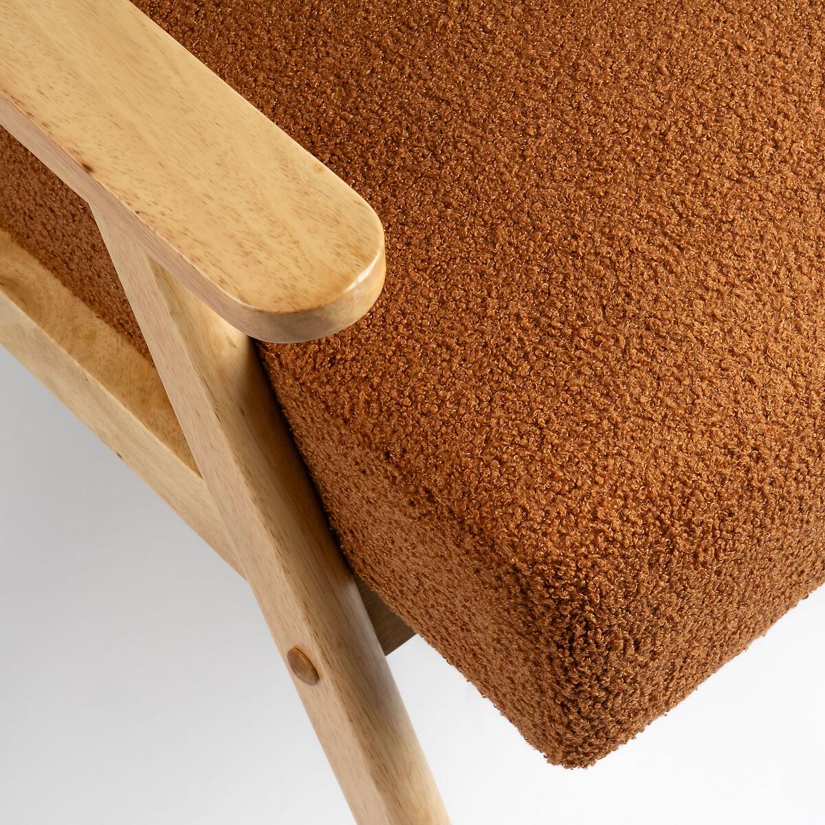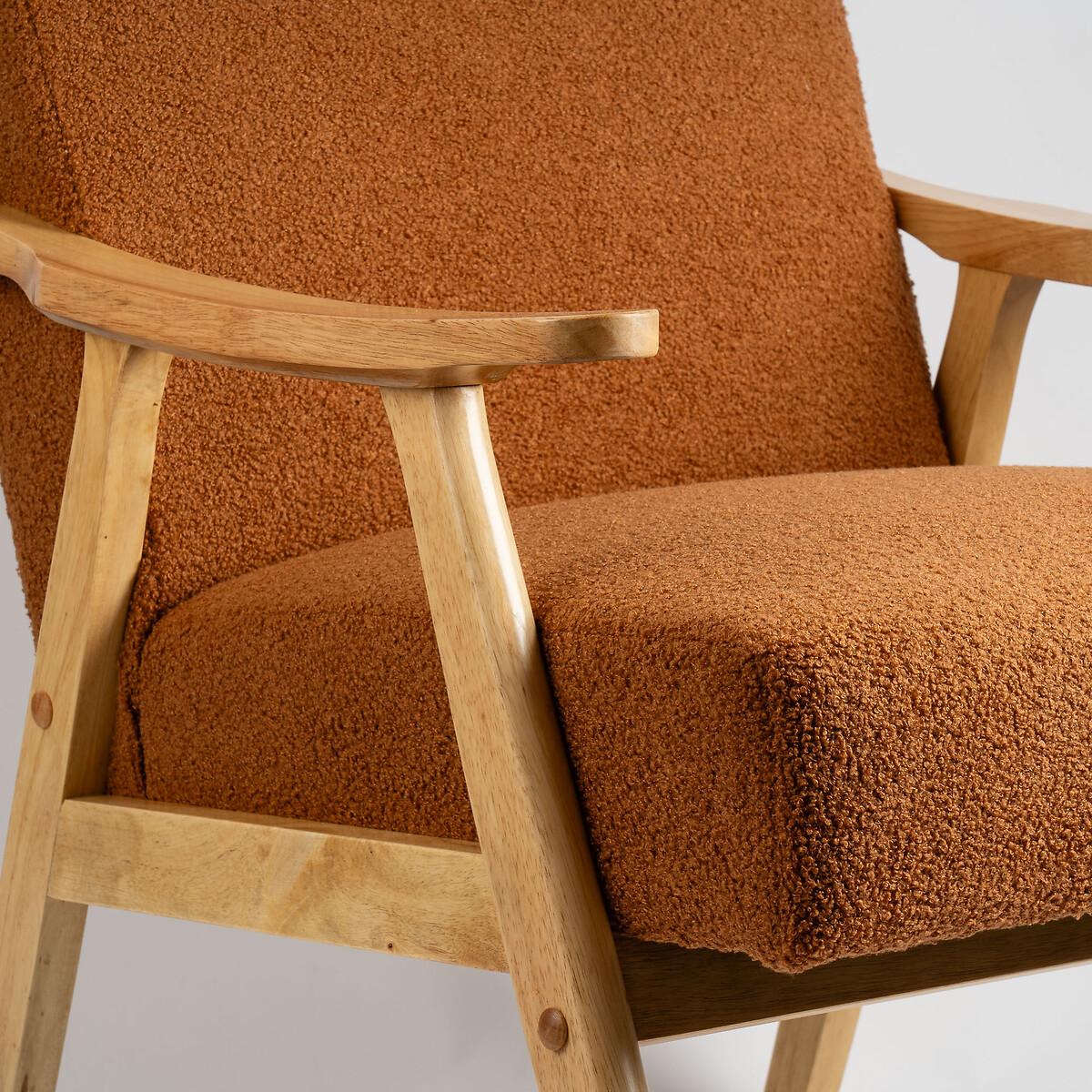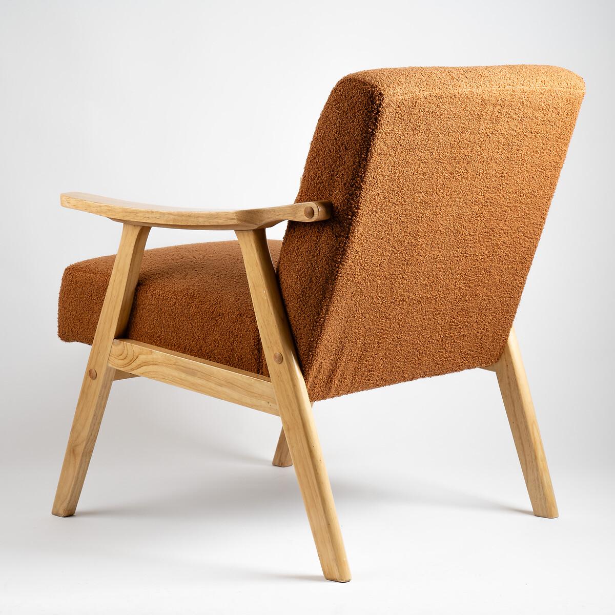 Sit back and snuggle into soft teddy bouclé. The retro modern silhouette with its flattened arms blends seamlessly into mid-century, japandi or scandi inspired living rooms. A honey-coloured wooden frame brings a natural organic touch. High density foam provides a supportive seat and back, underpinned by a solid rubberwood frame. Product detailsSoft to touch bouclé upholstery Comfortable foam filled seat and back. Solid rubberwood frame. Full assembly required. Back Height - 80cm. Floor to Base of Seat - 28cm. Floor to Top of Arm Rest - 59cm. Floor to Top of Seat - 44cm. Seat Depth - 53cm. Chair Depth - 70cm. Composition - Bouclé, Foam, Rubberwood. Product dimensions73 cm x 68 cm x 83 cm, weight 14 kg. Package dimensions76 cm x 62 cm x 33 cm, weight 15 kg. This product will be dispatched by one of our trusted suppliers. You’ll be contacted by their selected courier about your delivery. SEL01