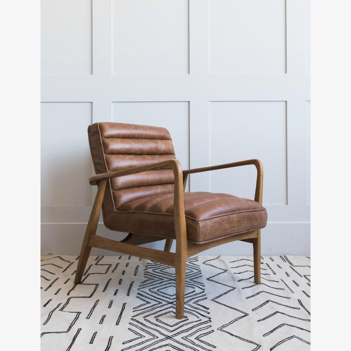 Love the Mid-Century style but you're searching for a leather armchair? Look no further! Our Mid-Century Leather Armchair oozes retro style while remaining effortlessly contemporary. The ribbed cushioned leather seat is so comfortable that this could easily be used as your main armchair while the sleek solid ash frame offers a stylish and streamlined alternative to bulkier leather chairs. Also available in black