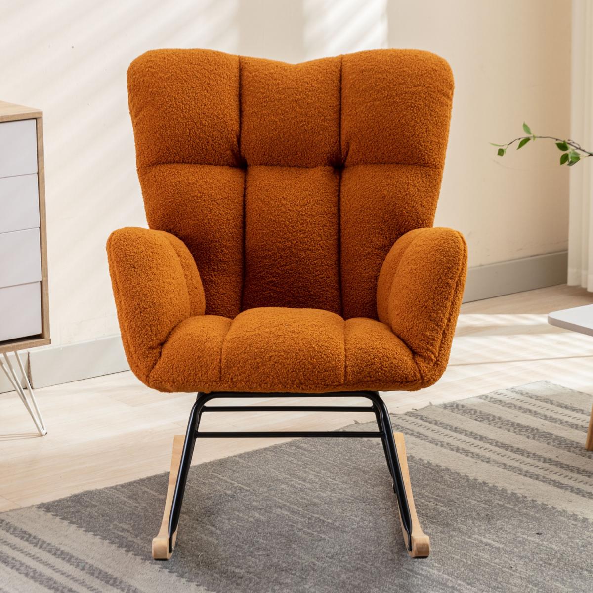 Product Features Product Pomposition:Soft Teddy Material+Foam Filled+Wooden Frame+Black Paint Metal Base+Wooden Rocking Legs+Upholstered+Floor Protection And Isolation Layer Product Size:Weight:Length80cm*Width70cm*Height 95cm,Weight:12kg Package Size-Weight:72cm*69cm*38cm,Weight:16kg Product Assembling:It can be assembled by one person in 15 minutes Applicable Scope:Indoor,Living Room,Dining Room,Bedroom,Hallway,and so on App Licable Age:7-70 Ages Weight Capacity:110lbs Product Care:Spot wipe clean with a soft, dry cloth Ergonomic backrest Rocking chair, not adjustable,Double stitch, strong and durable.