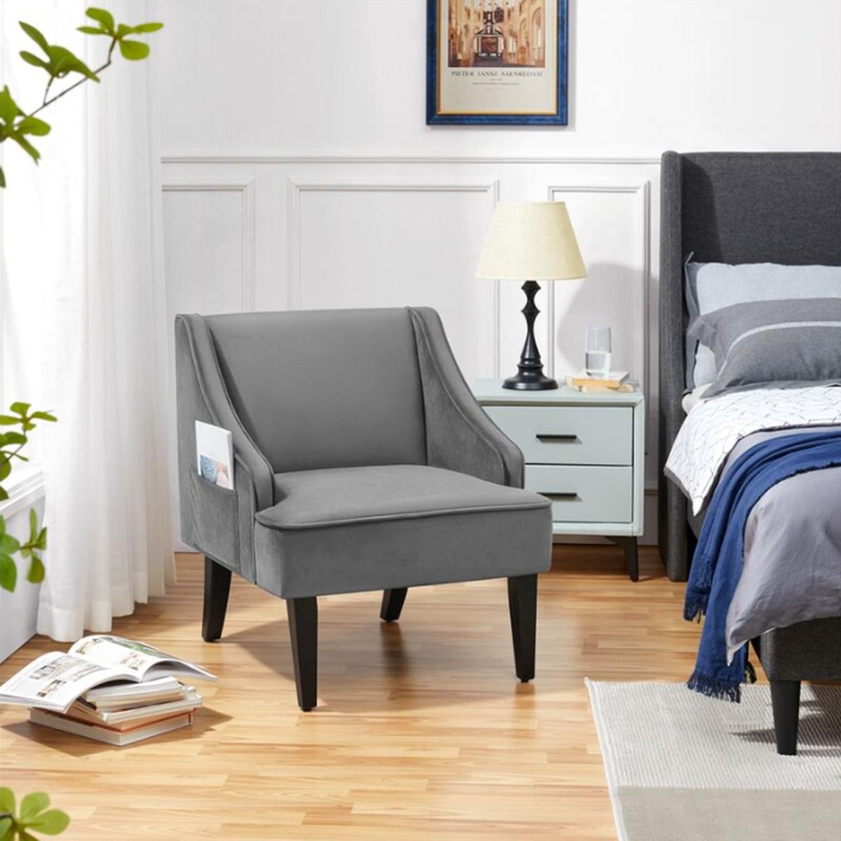 Mid century Modern Upholstered Accent Armchair with Rubberwood Legs Gray - Grey