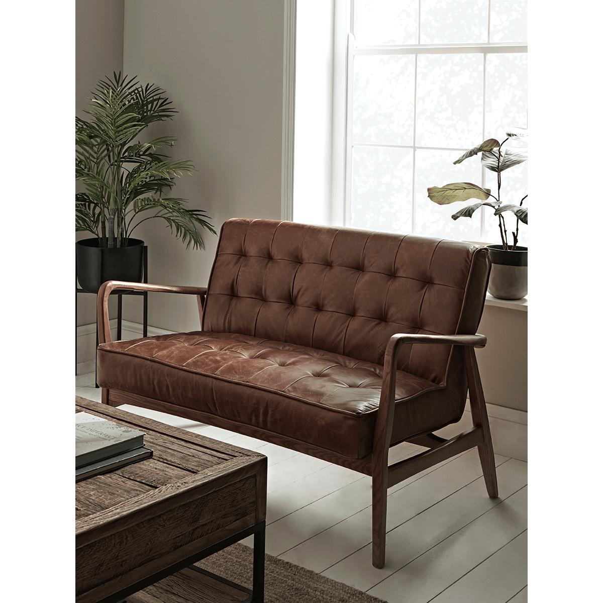 I love this leather mid-century sofa for its clean lines and timeless appeal, making it a versatile piece that can anchor both modern and traditional interiors. It works particularly well in Scandinavian-inspired schemes, where its slim arms and wooden legs complement minimal, neutral palettes, but it also adds warmth to more eclectic or industrial spaces. Practical styling tips include pairing it with textured cushions and layered throws for comfort, or adding an eye-catching coffee table to balance its understated elegance. Its leather finish is durable and easy to maintain, making it a practical choice for family living or frequent entertaining.