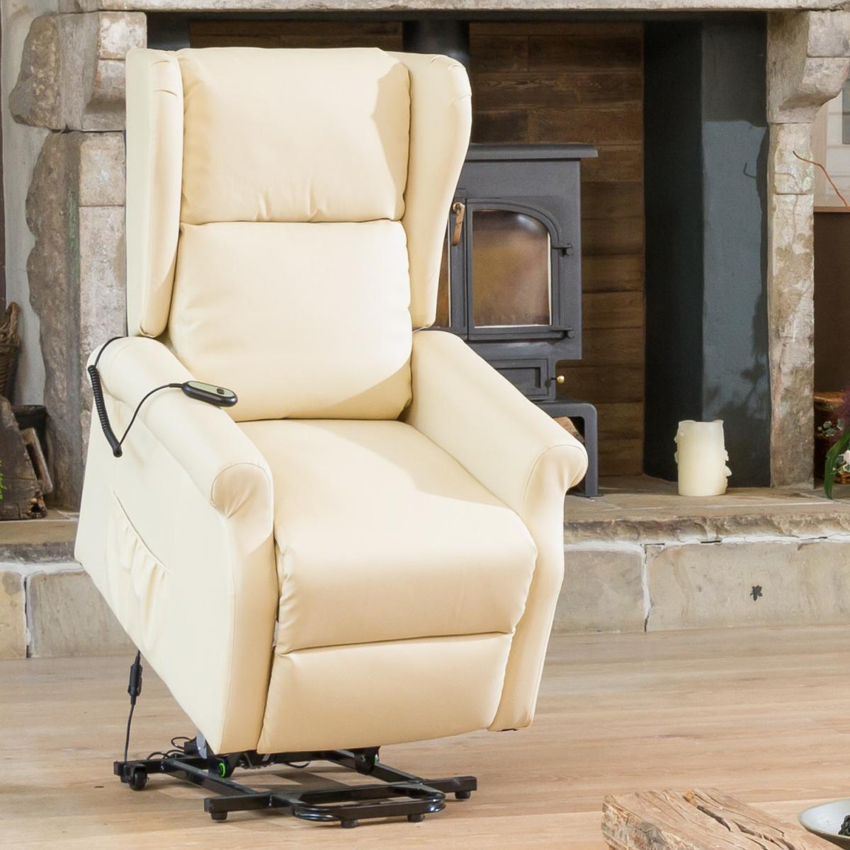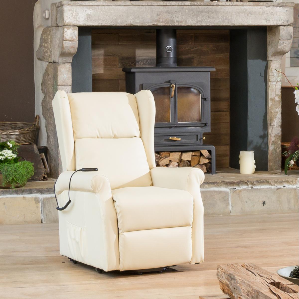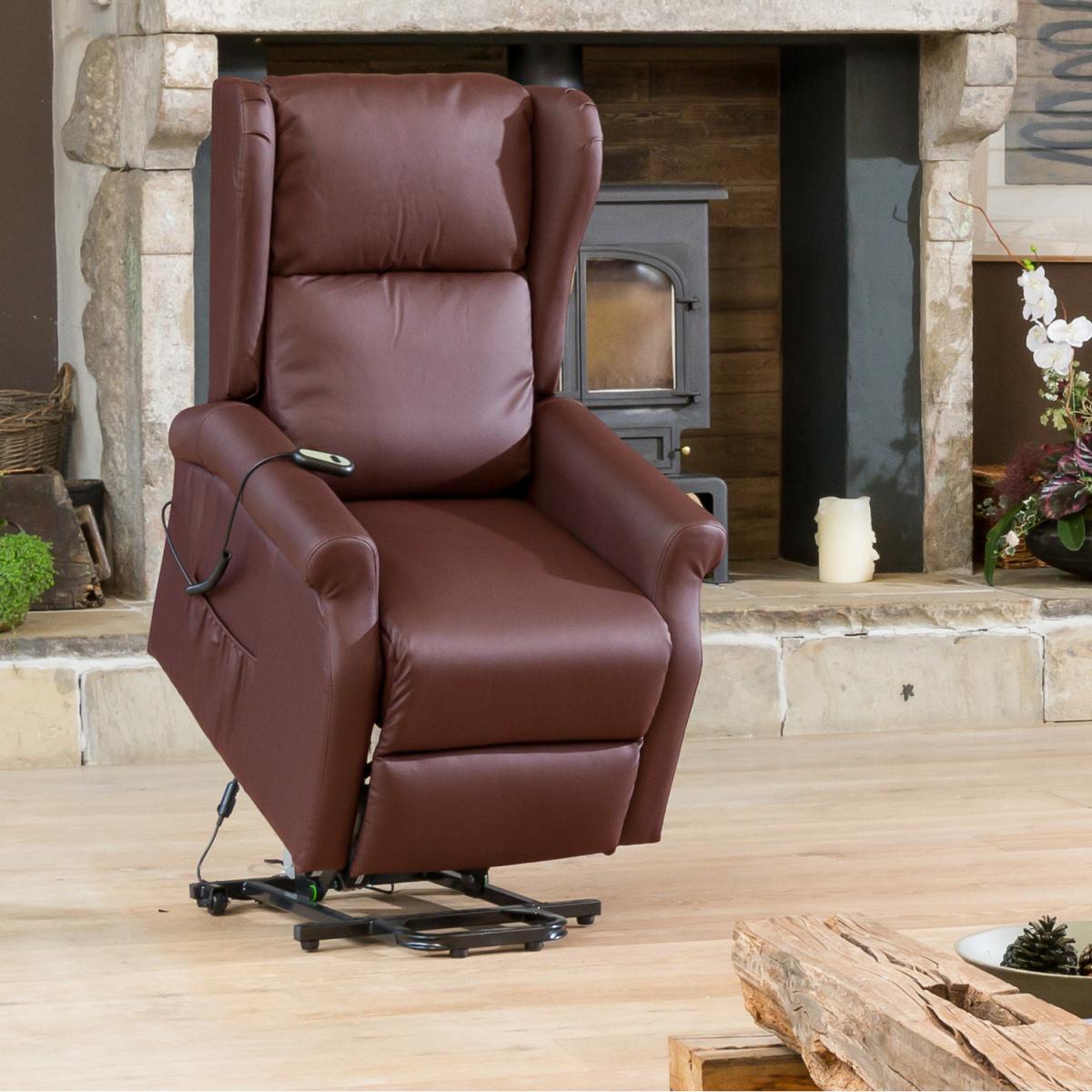 The Middleton Electric Riser Recliner with Massage and Heat is a classically designed chair with a high, supportive back and traditional wing back design. The overall size of the chair is sleek, perfect for those with limited space, however, the seating area itself is very spacious compared to other models in our range. The chair is covered in durable bonded leather and is available in 5 colours. The chair is entirely operated electrically, taking away any work at all for the user. The remote features two buttons allowing you to recline back or use the rise function to assist mobility in getting out of the chair. This chair also boasts massage functions in the seat, lower back and headrest, all of which can be used independently or together. There is also a heat function in the lumbar area to provide another relaxing feature, perfect for cooler evenings. This product will be delivered on our excellent white glove delivery service, this will include delivery into your room of choice and assembly for you.