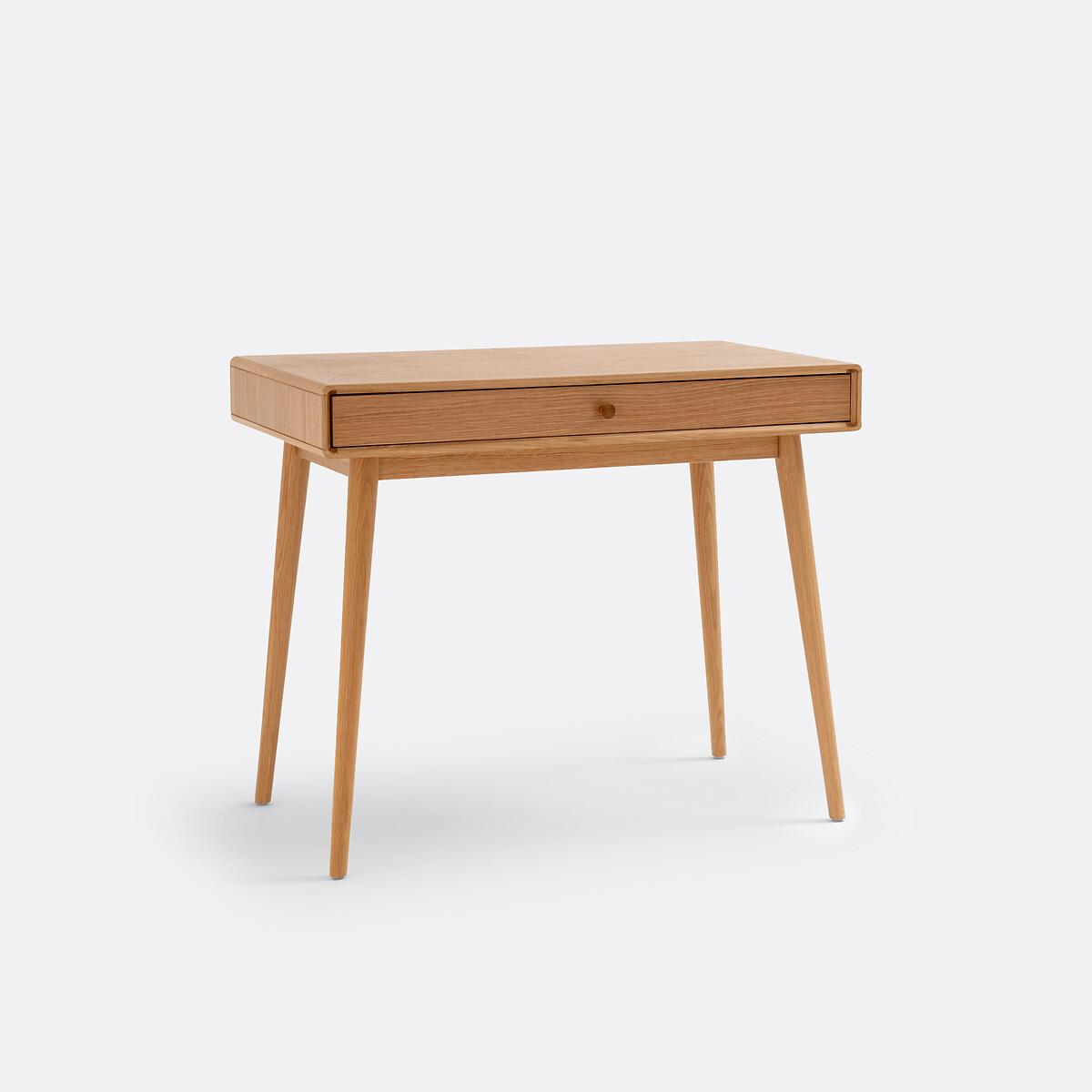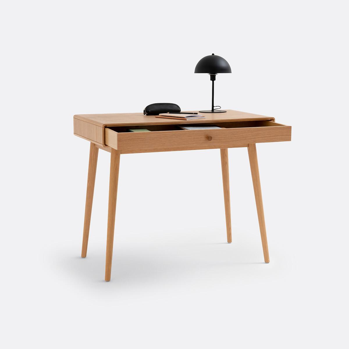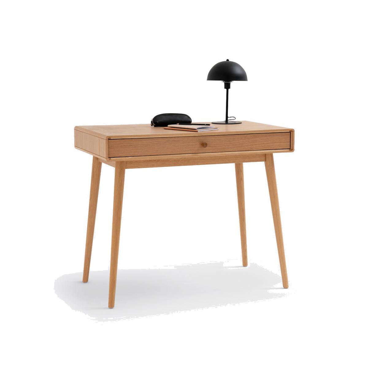 Make way for Scandinavian style with the Miji desk. Very practical thanks to its drawer. Designed by La Redoute Interiors. Product Details • Oak veneered MDF, FSC® certified • Handle and legs in solid FSC® oak • Nitrocellulose varnish finishDimensions. Overall • Width: 90cm • Height: 75cm • Depth: 53cm • Weight: 18kg. Usable space • Drawer: L84 x D37 x H6cm • Height of legs: 64cmDelivery:. This product is sold ready to assemble. Note! Please check that all access points are large enough to accommodate your delivery (doors, stairs, lifts). • WOOD FROM SUSTAINABLY MANAGED FORESTS. FSC® certified wood comes from forests that are environmentally, socially and economically well managed. Dimensions and weight of parcel1 parcel • L99 x H20 x D60cm. 21kg.