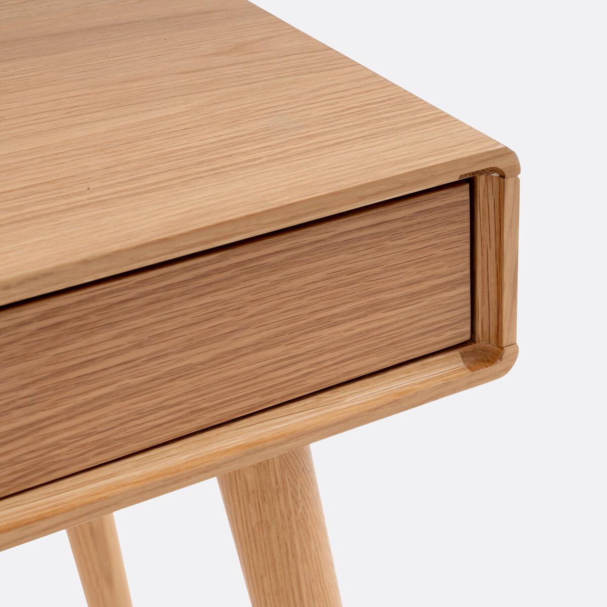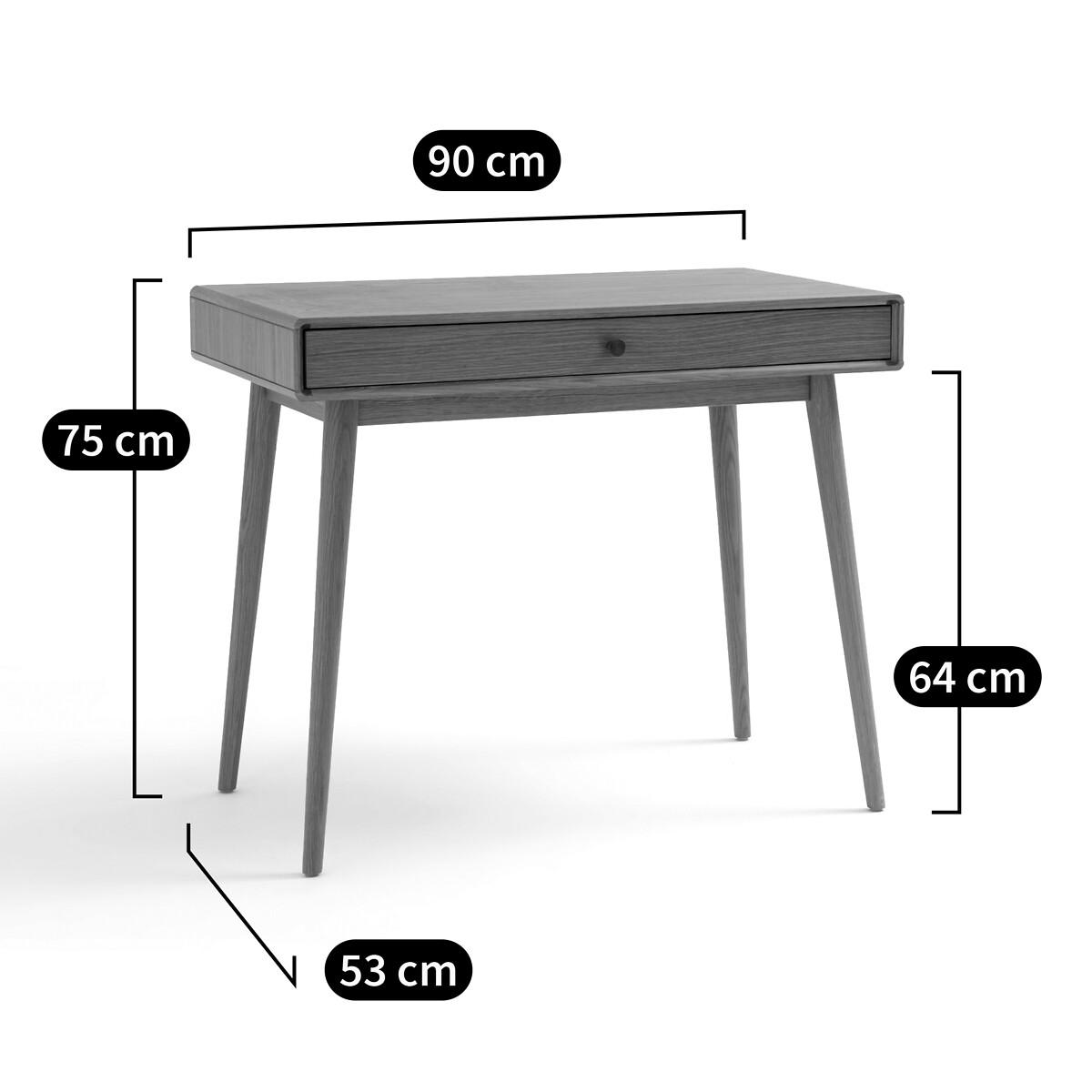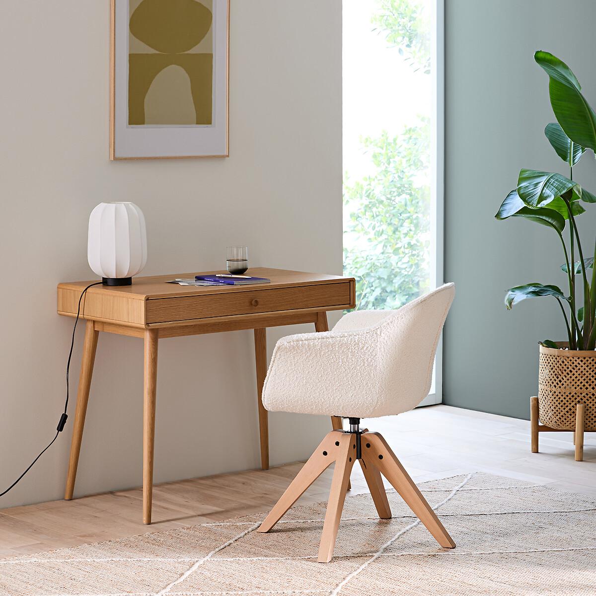 Make way for Scandinavian style with the Miji desk. Very practical thanks to its drawer. Designed by La Redoute Interiors. Product Details • Oak veneered MDF, FSC® certified • Handle and legs in solid FSC® oak • Nitrocellulose varnish finishDimensions. Overall • Width: 90cm • Height: 75cm • Depth: 53cm • Weight: 18kg. Usable space • Drawer: L84 x D37 x H6cm • Height of legs: 64cmDelivery:. This product is sold ready to assemble. Note! Please check that all access points are large enough to accommodate your delivery (doors, stairs, lifts). • WOOD FROM SUSTAINABLY MANAGED FORESTS. FSC® certified wood comes from forests that are environmentally, socially and economically well managed. Dimensions and weight of parcel1 parcel • L99 x H20 x D60cm. 21kg.