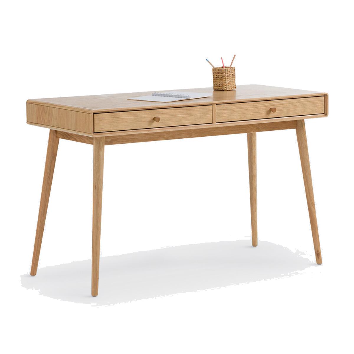 Make way for Scandinavian style with the Miji desk. Very practical thanks to its 2 drawers. An exclusive by La Redoute Interiors. Product Details • 2 drawer unit in oak veneered MDF, FSC® certified • Legs and handles in solid oak, FSC® certified • Nitrocellulose varnish finishDimensions. Overall • Width: 120cm • Height: 75cm • Depth: 53cm • Weight: 25kg. Usable space • Drawer: L54.5 x H6 x D37.3cm • Height of legs: 64cm • Assembly required. • WOOD FROM SUSTAINABLY MANAGED FORESTS. FSC® certified wood comes from forests that are environmentally, socially and economically well managed. Dimensions and weight of parcel1 parcel • L130 x H20 x D63cm. 29kg.