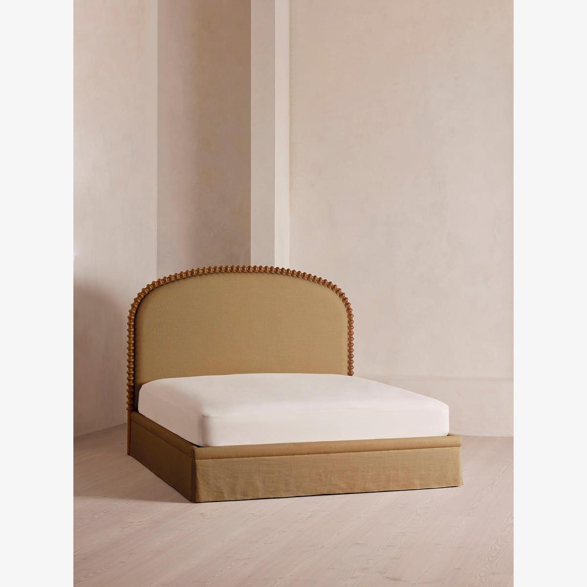 Fully upholstered in natural linen, a curved headboard surrounded by bobbin detailing creates a focal point for your bedroom. Mirroring the styles seen in Soho House Nashville with its curved headboard, the Mika bed is carved from solid turned timber surrounded by intricate bobbin detailing. Fully upholstered in natural linen that comes in our full made-to-order palette, it's trimmed with a matching valance.