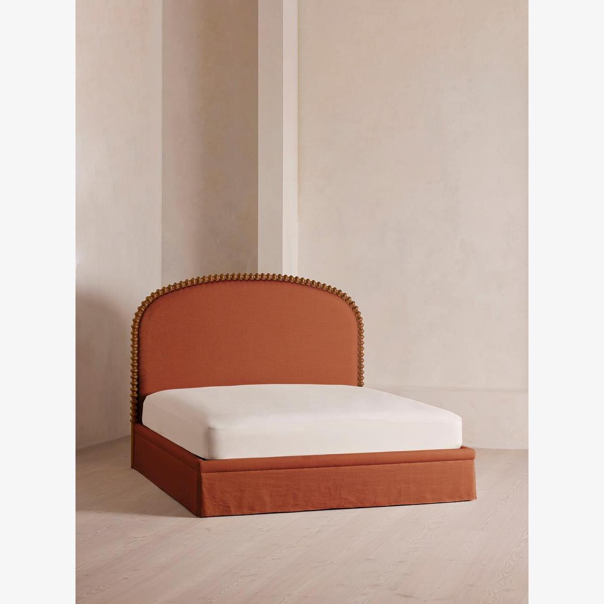 I’m a fan of this Mika-style super-king linen bed in antique rose for its warm, muted pink tone and natural texture. It sits comfortably in both Scandi-inspired and contemporary settings, pairing neatly with pale oak furniture or soft grey walls. For styling, I’d layer crisp white sheets with a light throw in a complementary clay or terracotta shade, then add a couple of bolster cushions in a neutral wool or boucle. Keep bedside tables simple - think slim metal frames or raw timber tops - and introduce a pair of small table lamps in brass or matte black to ground the look.