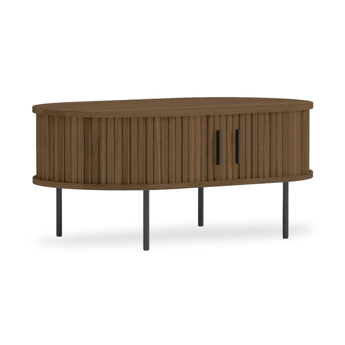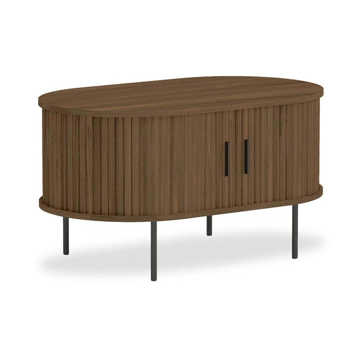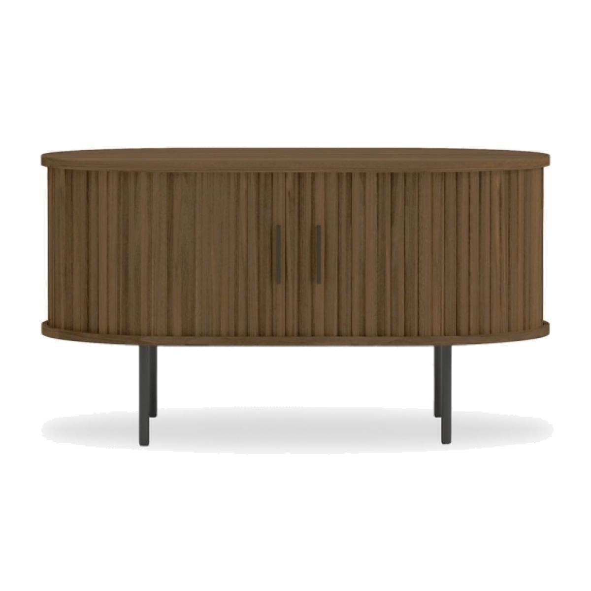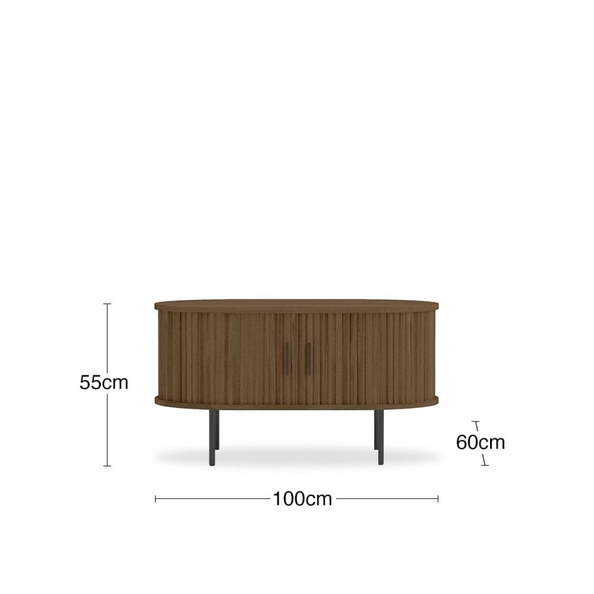 To declutter and organise in style, the two cupboard doors of the Mika Wooden Coffee Table glide effortlessly across revealing a wide spacious storage section suitable for all manner of living room accessories. In a walnut-stained wood finish with ribbed detailing, the Mika Storage Coffee Table incorporates contemporary design with durable materials for a gorgeous storage option with practicality.