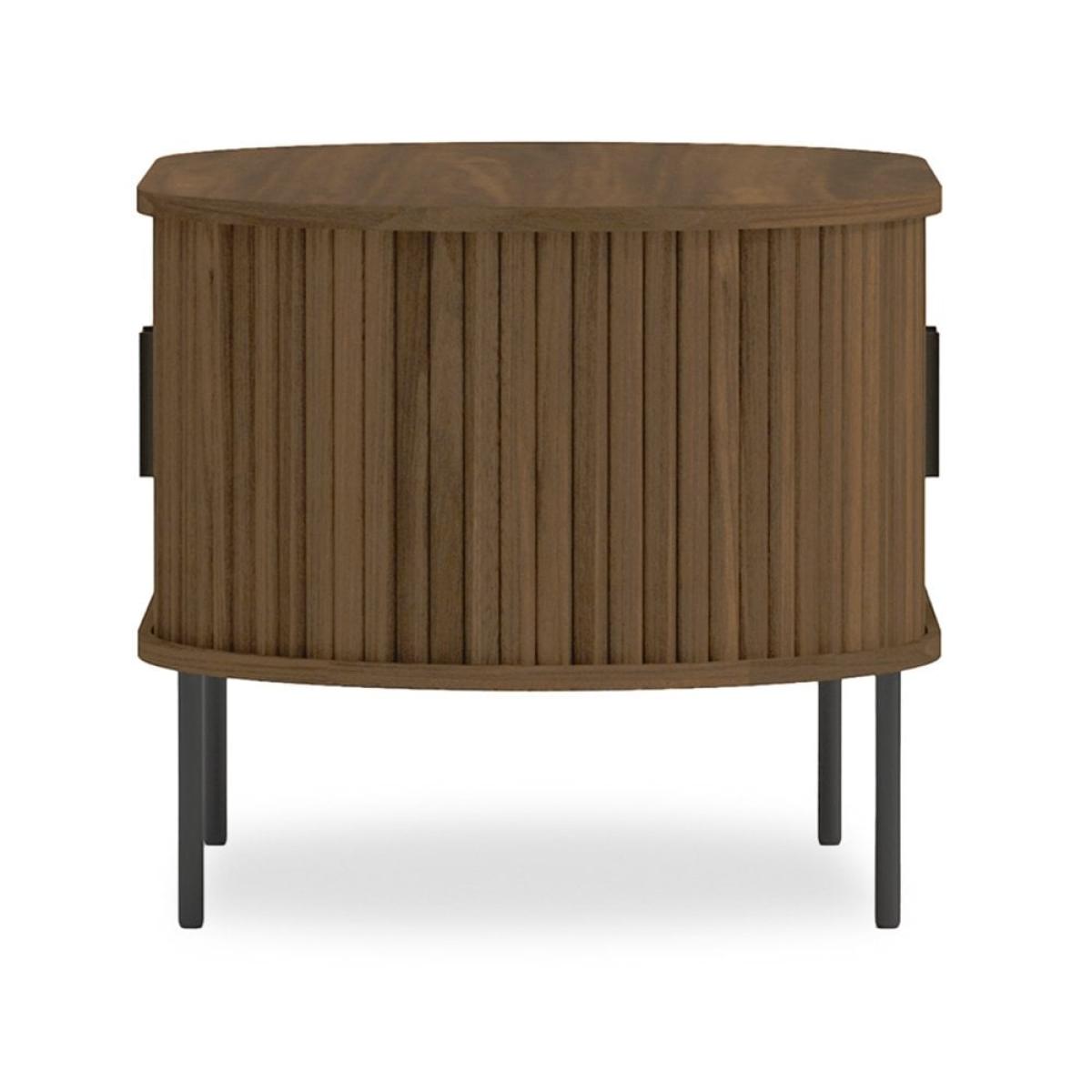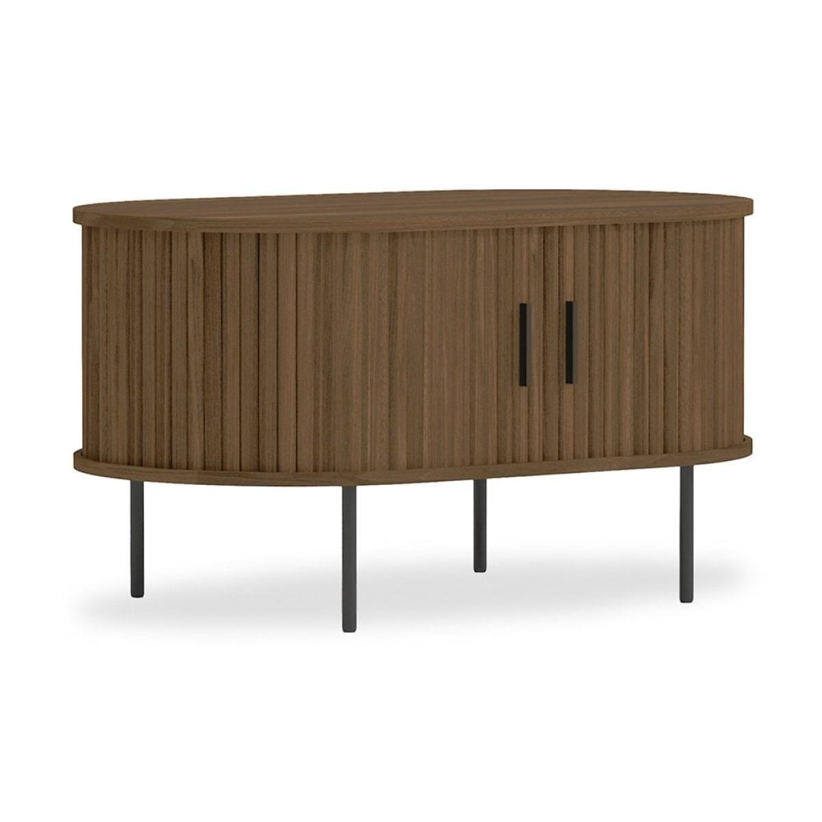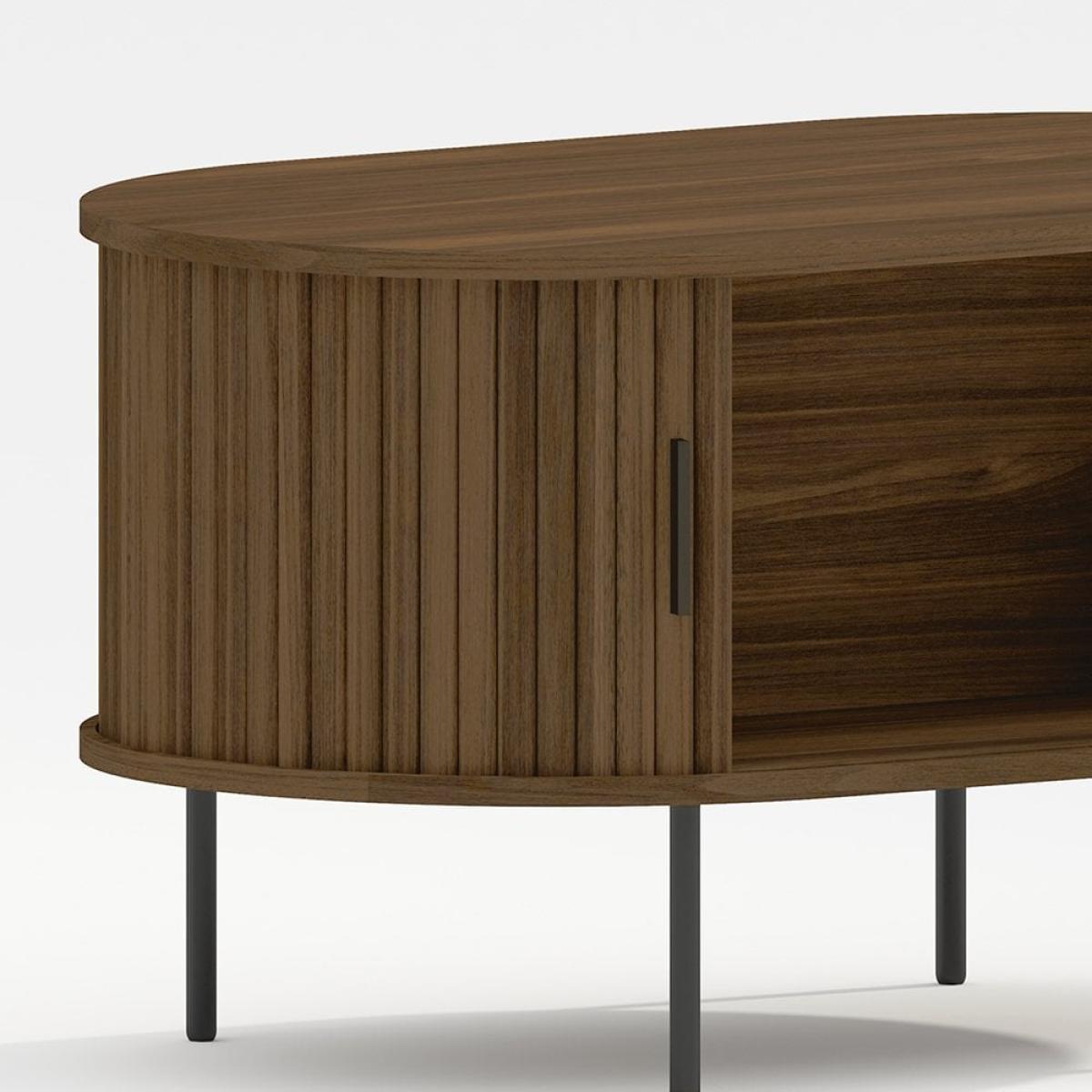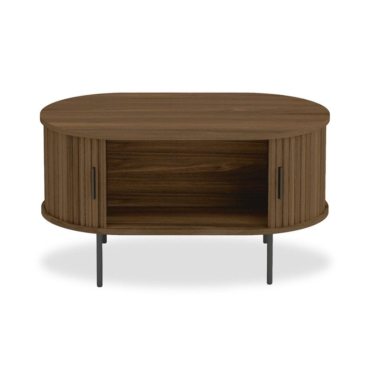To declutter and organise in style, the two cupboard doors of the Mika Wooden Coffee Table glide effortlessly across revealing a wide spacious storage section suitable for all manner of living room accessories. In a walnut-stained wood finish with ribbed detailing, the Mika Storage Coffee Table incorporates contemporary design with durable materials for a gorgeous storage option with practicality.
