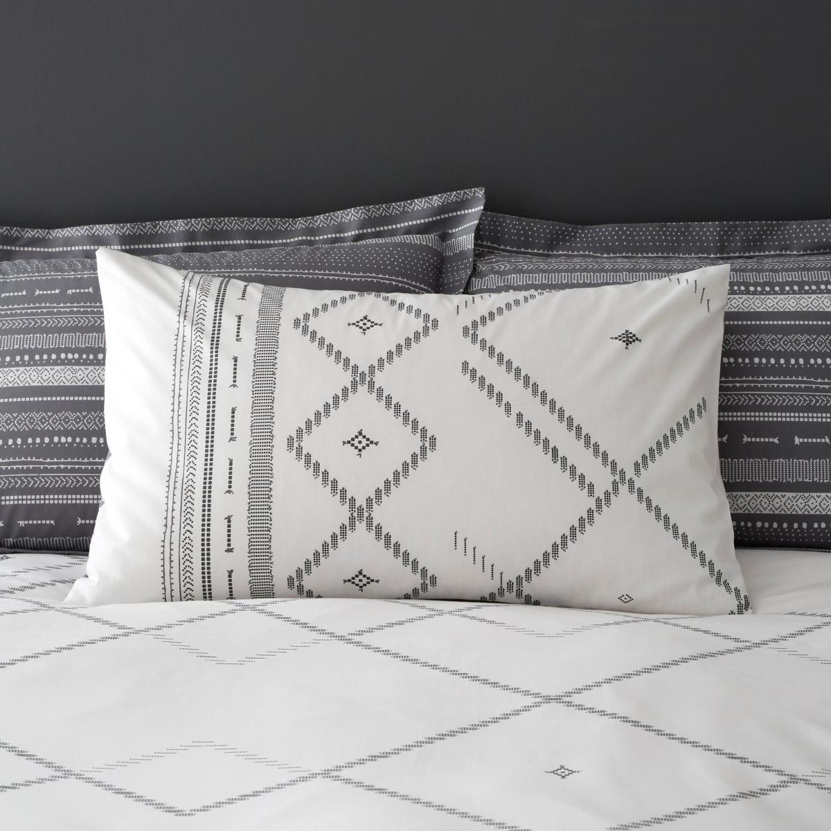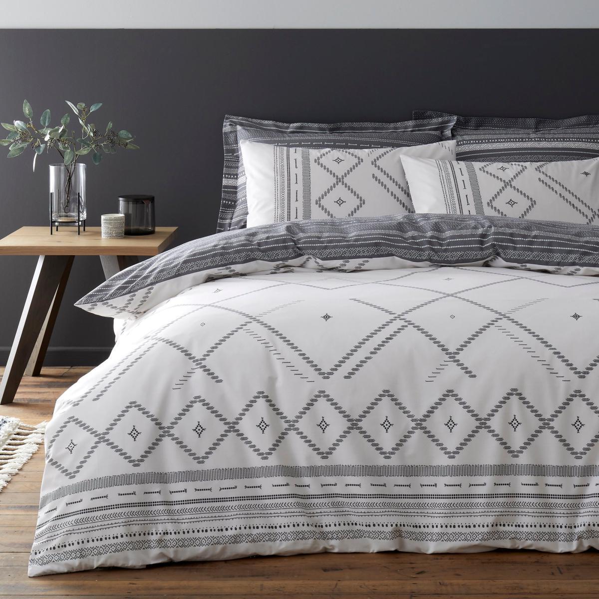 Boasting a global feel with an intricate detailed pattern, this duvet cover and pillowcase set is perfect for adding a simple yet stylish touch to your bedroom. In neutral colourways, this reversible bedding set compliments any bedroom interior. Made from a choice of polycotton or cotton this bedding set is soft, durable, and machine washable.