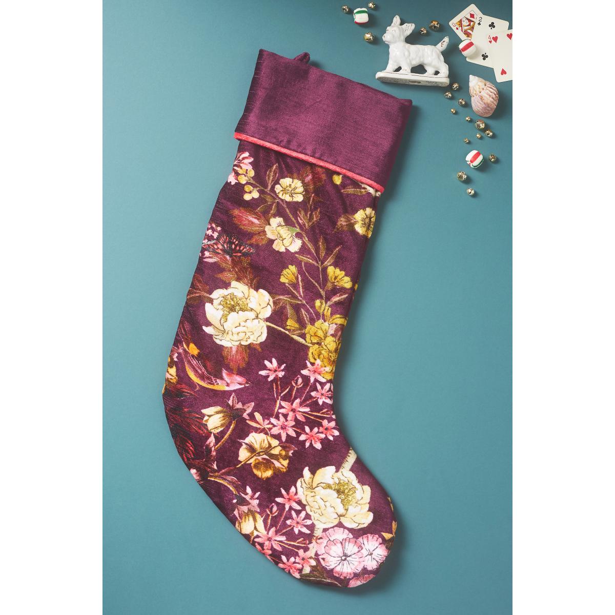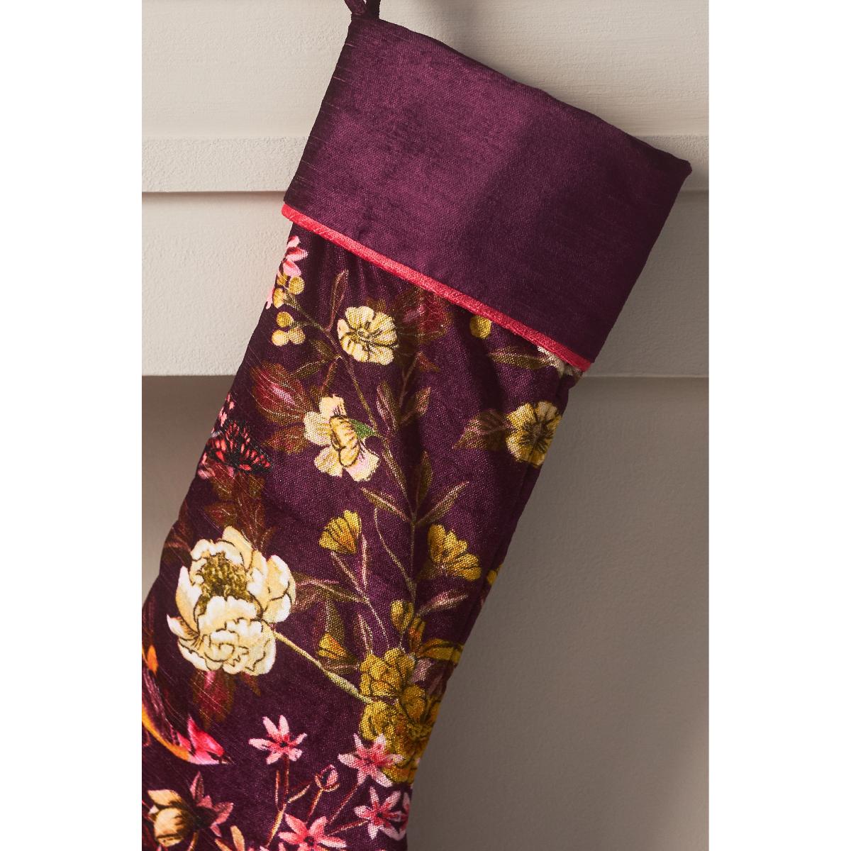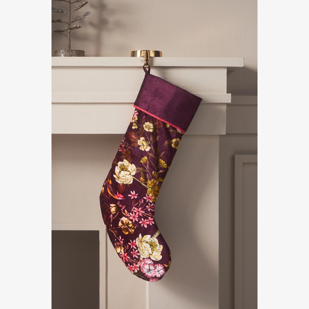 Unwrap the splendour of the season with our Holiday 2024 collection, where magic meets merriment. Featuring rich-hued florals and vines, the Mika Collection infuses your wintry ambience with an air of gothic glamour. Mika Stocking by Anthropologie in Purple